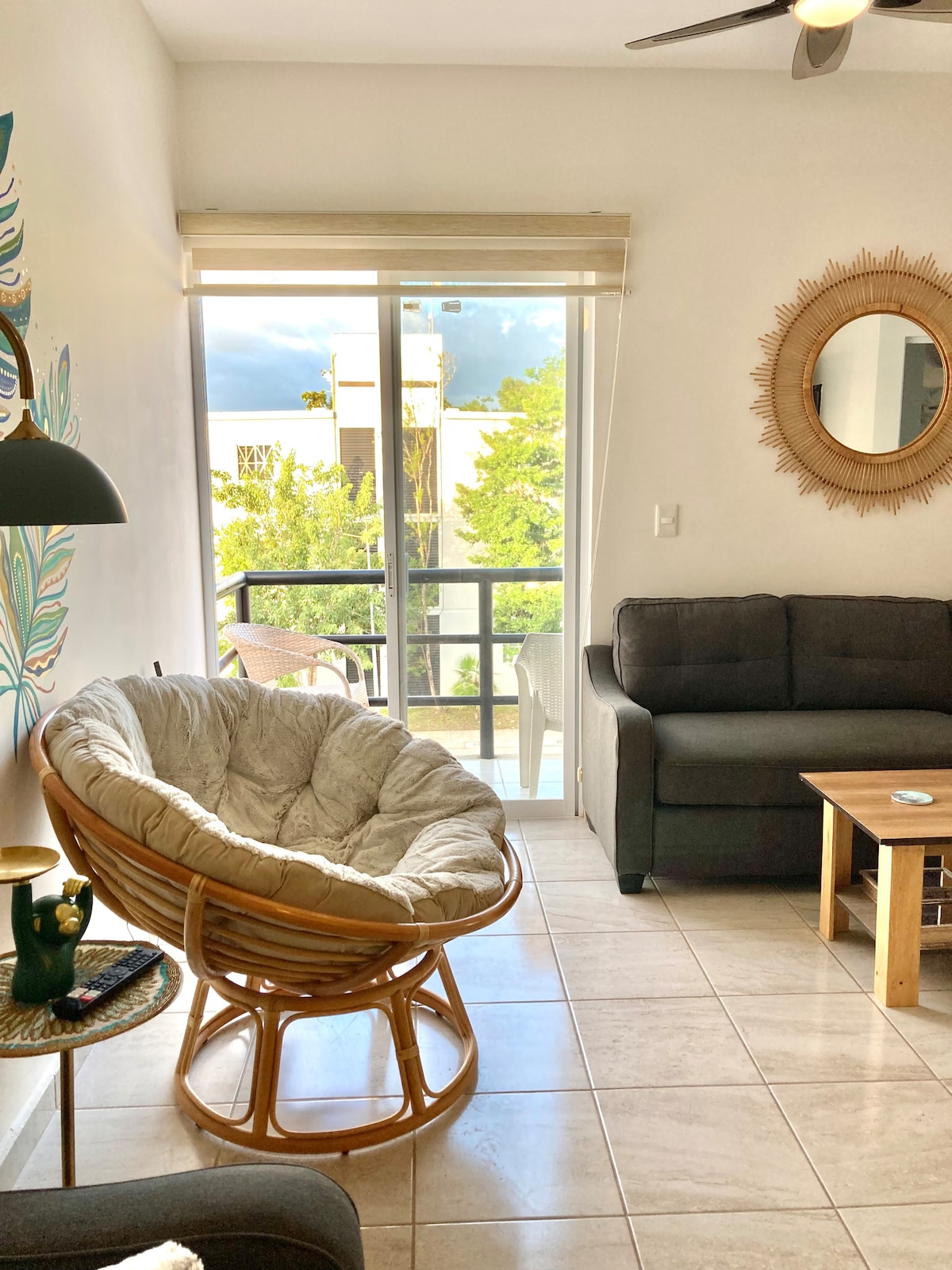 Zona tranquila: construcción completada! Apartamento alegre y cocina equipada. Excelente WIFI. Balcón privado con sillas. A/C, ventiladores, apagones, smart-TV en los dormitorios y la habitación principal. Camas de queen en una, camas convertibles (de dos a king) en la otra. Ducha en agua ablandada, ¡agradable para el cabello y la piel. Servicios de conserjería que incluyen recogida en el aeropuerto, alquiler de bicicletas, tours, etc. A minutos: arrecife de coral, cenotes, tren Maya, aeropuerto