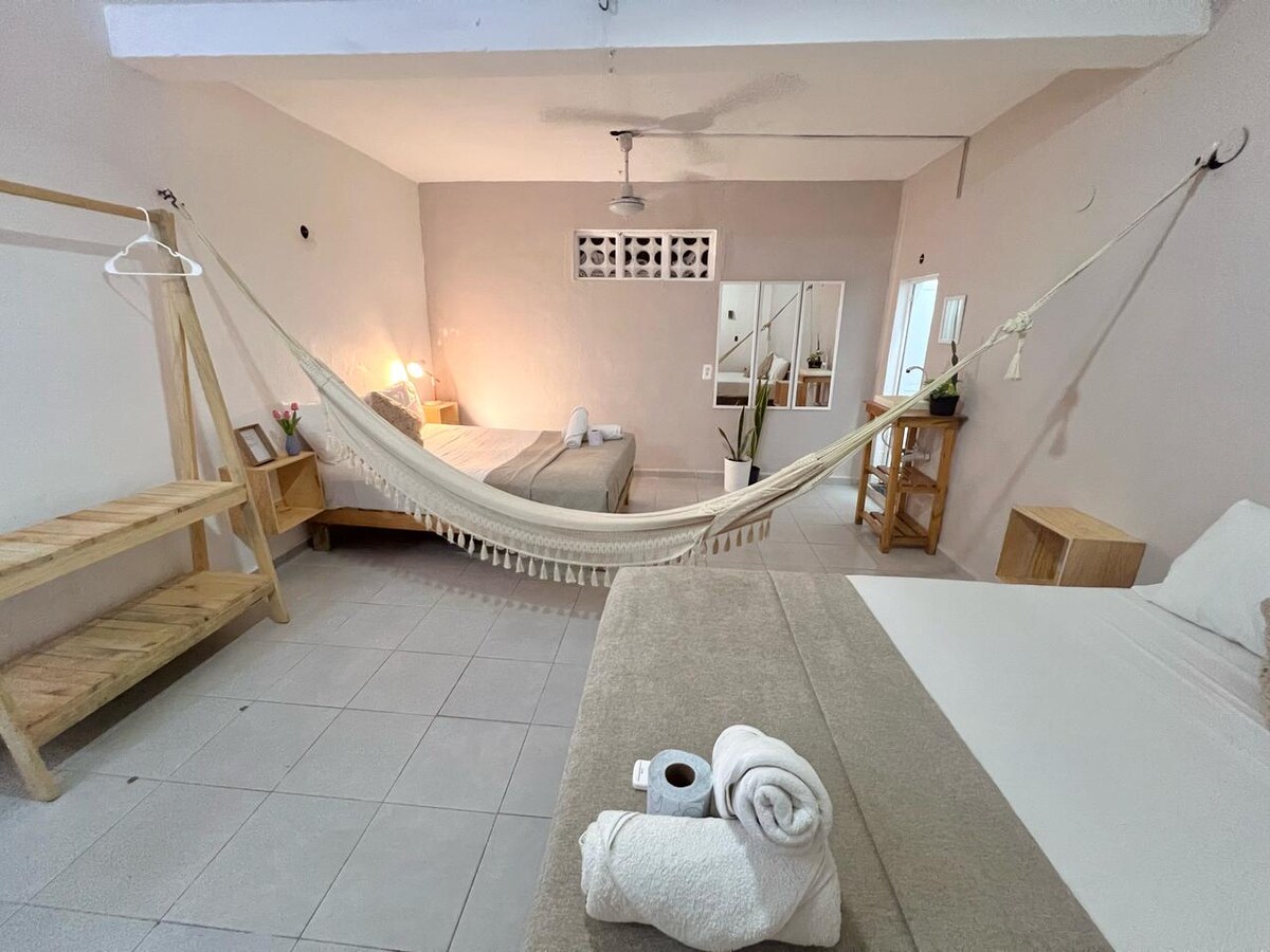 Disfruta de una estancia cómoda en un cogedor estudio ubicada en pleno corazón de Playa del Carmen. A solo unos minutos de MEGA, la playa y la quinta. Cuenta con 2 camas matrimoniales Baño completo (no cuenta con agua caliente) Aire acondicionado Una mesa que puede usarse como comedor o espacio de trabajo, cuenta con cocineta El edificio es tranquilo, ideal para descansar mientras disfrutas la conveniencia de estar cerca de todo. Para llegar a la habitacion se necesitan subir escaleras