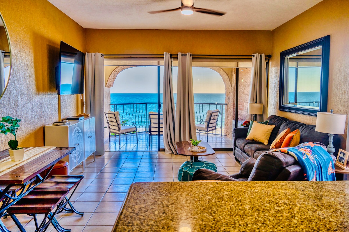 Ya sea que estés buscando diversión en familia, una escapada romántica o un descanso y relajación, ¡este soleado y luminoso paraíso con vista al mar lo tiene todo! Muy limpio y bien cuidado por el propietario. Espectaculares vistas de Sandy Beach y el mar de Cortés. ¡Situado en pleno de Sandy Beach, a pocos pasos de bares, restaurantes y actividades! ¡3 piscinas, restaurantes a pocos pasos, seguridad 24/7, palapas de playa, gimnasio, tienda de comestibles en el lugar y mucho más! ¡Sistema de filtración de agua RO recientemente agregado!