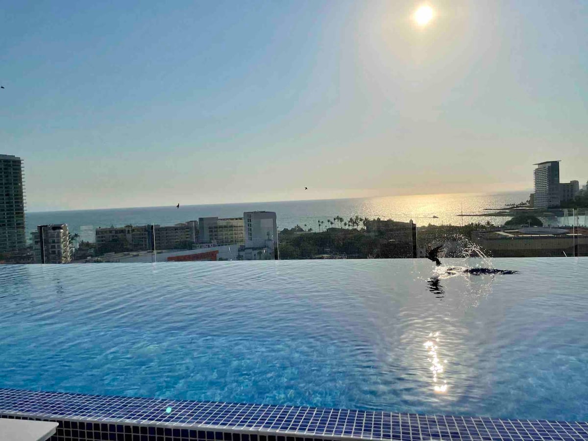 - Increíble roofgarden con piscina infinity e impresionantes vistas al mar. -WiFi, Smart TV, cocina bien equipada, lavadora, aire acondicionado, estacionamiento ¡y más! -A 15 minutos del centro de Vallarta y a 25 minutos de Riviera Nayarit. -Cerca de tiendas, terminal marítima, hospitales, restaurantes, vida nocturna y actividades. -¡Reserva ahora y experimenta lo mejor de Puerto Vallarta con estilo y comodidad!
