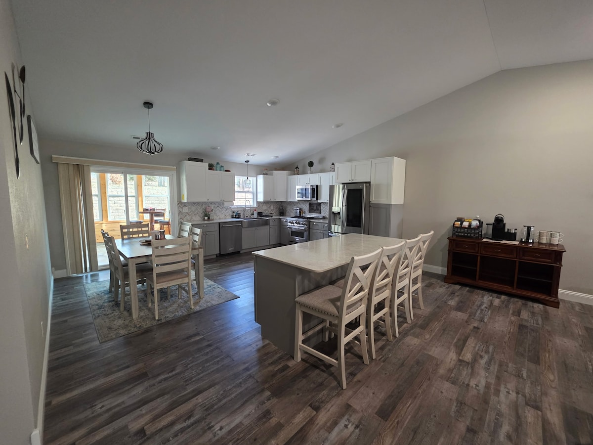 Welcome to your ultimate home away from home! Our charming 3-bedroom, 2-bathroom home is the perfect destination for your next getaway. Imagine gathering with family and friends in the spacious, fenced yard, where you can grill, play games, and relax. There is also a dedicated office area. Our game room is filled with entertainment options for all ages. With enough space to comfortably sleep 9 guests, Don't miss out on the opportunity to create lasting memories during your trip to the Ozarks!