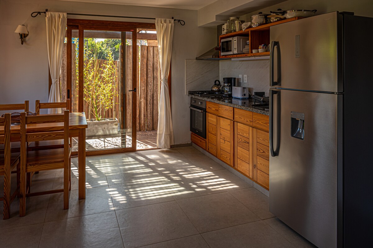 A 4 cuadras de la playa del Rivero, este pequeño apart hotel tiene el confort de una cabaña en el tamaño de una habitación de posada. Cada cabaña tiene baño completo con techo de vidrio y cañas, cama sommier, aire acondicionado, direcTV, WiFi, alarma, kitchenette completa, comedor, un pequeño living y una terraza al frente con vista al mar y un living con hamaca paraguaya. Contamos con una huerta orgánica disponible para que puedas consumir verduras de estación.