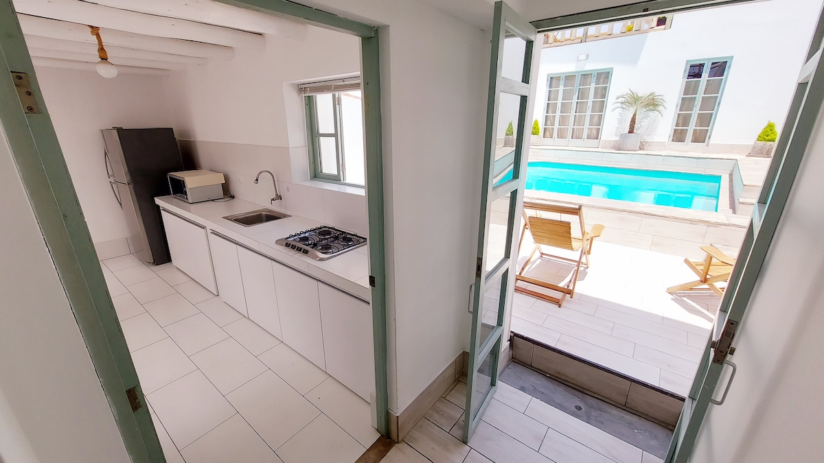 ¡Aprovecha nuestro increíble descuento del 40% por la segunda noche de tu estadía! La propiedad cuenta con amplios espacios con iluminación y ventilación natural, acompañados con diversos tipos de plantas Terrazas diseñadas con troncos de eucalipto pulido natural, iluminadas con bombillos tipo guirnaldas para una velada inolvidable. El área de piscina cuenta con mamparas color verde nilo (estilo vintage) y una pared de ladrillos rococho rústico con iluminación indirecta.