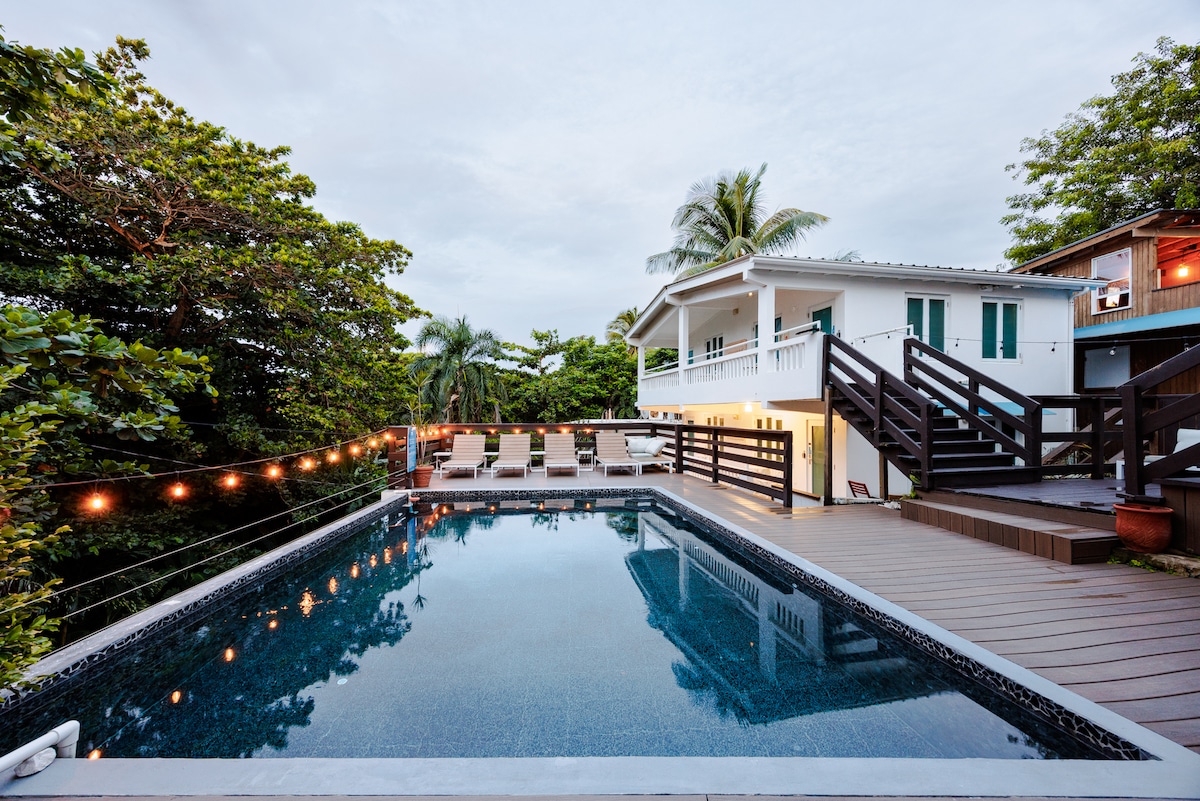Casa de vacaciones privada en Rincón, escondida en la costa oeste de Puerto Rico, a pocos pasos de Sandy Beach. La residencia vacacional colinda con el hotel Casa Verde, pero está completamente separada, con entrada privada y piscina privada con un impresionante patio. A solo unos pasos encontrarás restaurantes informales y entretenimiento en vivo en Kahuna Burger Bar, un entorno espectacular para disfrutar de playas aisladas, puestas de sol majestuosas y surf de clase mundial. La escuela de surf Rincón y nuestro conserje de la isla están disponibles en el sitio.