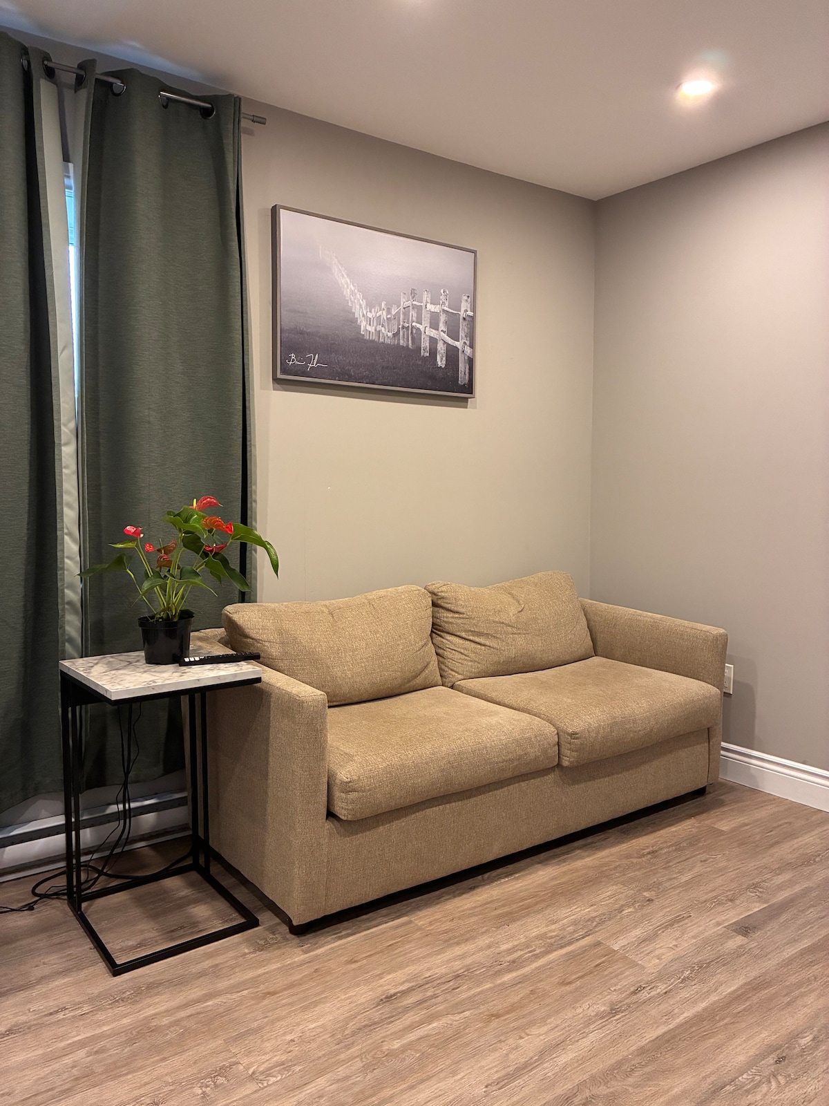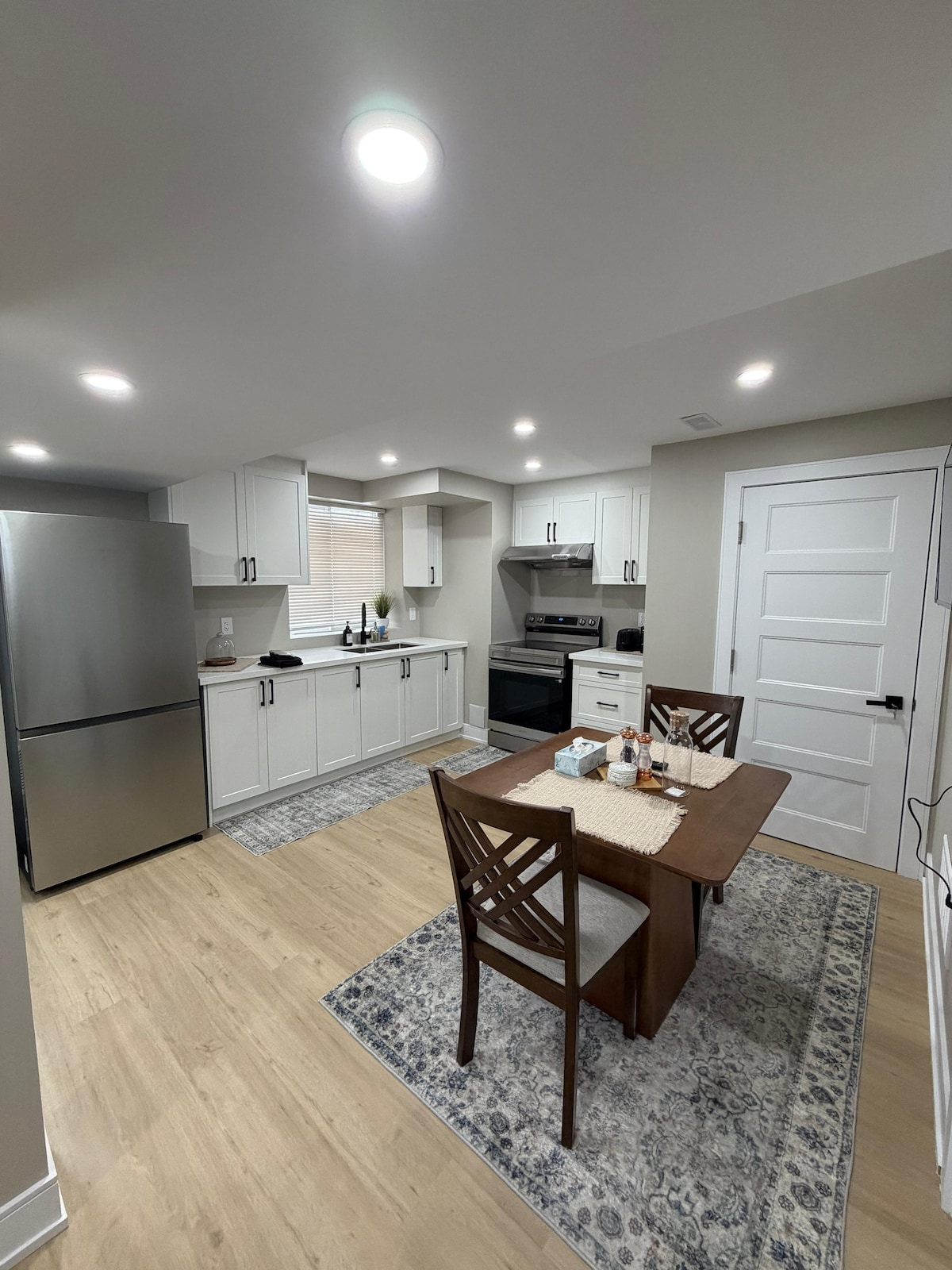 Bienvenido a esta hermosa suite de dos dormitorios en el sótano. Situada en un barrio tranquilo y seguro, cerca de la universidad, el centro de la ciudad y los centros comerciales de Guelph. La suite tiene entrada independiente y plaza de aparcamiento. Cada dormitorio tiene una cama tamaño queen con sábanas de alta calidad. También cuenta con una hermosa cocina con encimera de cuarzo, lavandería privada, un reluciente baño de 4 piezas y una acogedora sala de estar con TV. Para estancias cortas y medianas, ¡esta suite será tu hogar perfecto lejos de casa!