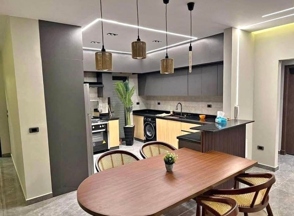 Consta de dos dormitorios, uno doble y otro individual con cama tamaño king, increíble vista de la torre de El Cairo y sala de estar. Decorado con muebles modernos, bonita cocina de estilo americano equipada con todo lo necesario, justo en la tranquila cadena de comida rápida a solo 600 metros del apartamento, además del mercado local cerca de nuestra ubicación. Estamos ofreciendo un alto nivel de servicios de limpieza con la ayuda de la ama de llaves, que realmente está haciendo un gran trabajo ayudándonos a mantener la higiene y el orden estándar occidental.