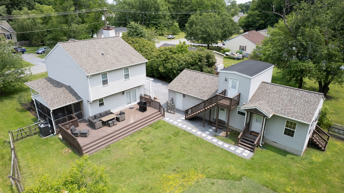 Preciosa suite de tres habitaciones frente al mar convenientemente ubicada a menos de 10 minutos de la histórica Chestertown y Washington College. Hermosas vistas de nuestro arroyo de mareas, cocina completa, lote arbolado, barrio tranquilo, observación de aves, kayak, excelentes opciones para andar en bicicleta y correr. Se admiten mascotas amistosas (gatos y perros de interior que puedan compartir el patio con nosotros y nuestro perro). Donamos el 5% de los ingresos a Kent Htainable Housing, el refugio de cuidado de animales del condado de Kent o la conservación de ShoreRivers, tu elección.