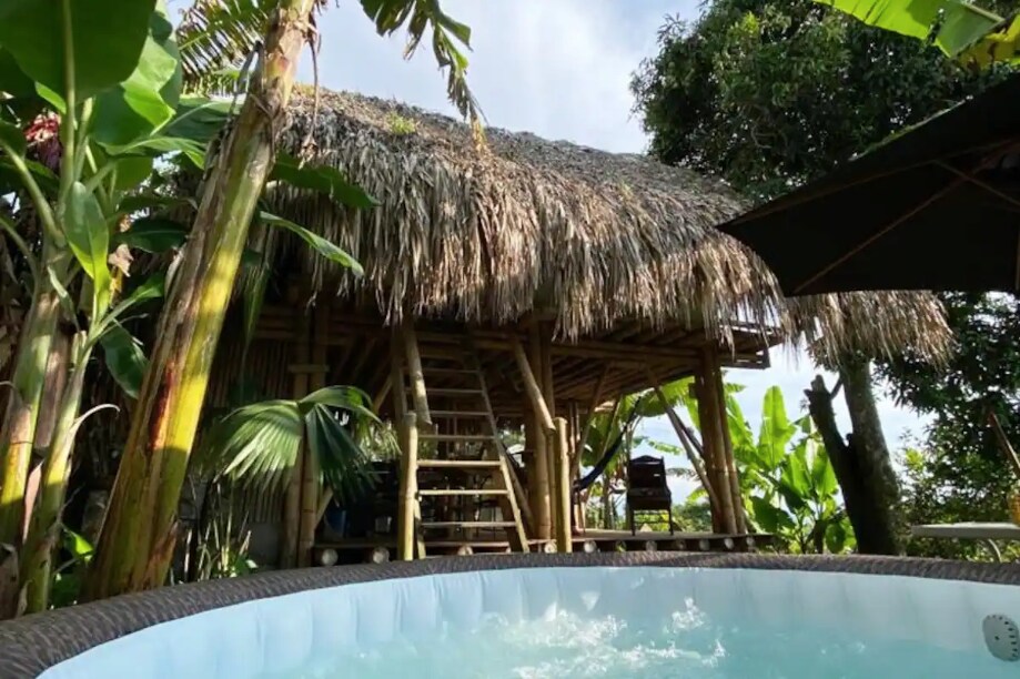 Esta casa del árbol, elevada a 6 metros de altura en un caucho de más de 60 años, ofrece una experiencia romántica de lujo en medio de un bosque de guadua donde vivirás una desconexión y comunión con la naturaleza y quienes la habitan. Ubicada en el corazón turístico del eje cafetero, una de las regiones más visitadas y hermosas de Colombia By AMANATU Ecolodge & Spa