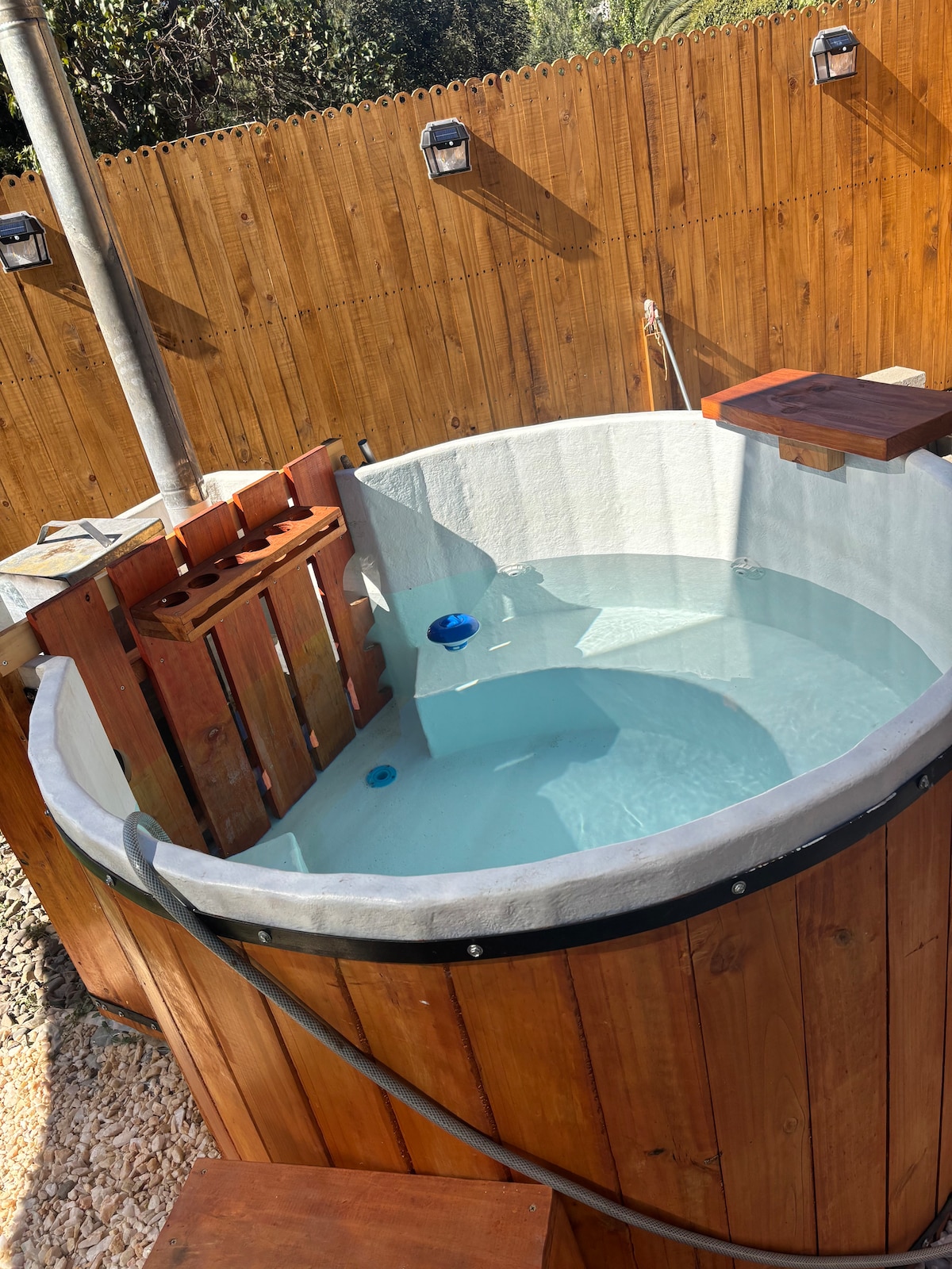 Cabaña minimalista en un terreno exlusivo de 1000 m sólo para ti. Tinaja exclusiva a tu disposición 24 horas al día. Sumérjete en agua caliente y disfruta del atardecer y las estrellas. Cabaña totalmente construida en madera. Interior, pisos y vigas a la vista. Siente la calidez de la madera y disfruta de las vistas al mar. Jardín privado con quincho y fogón de fogatas. Estufa de leña. Proyector con Netflix con pantalla gigante. Acceso al acantilado desde el terreno.