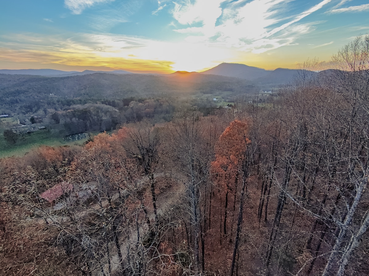 • 3 camas/2 baños 🛏️ • Cabaña moderna de 1100 pies cuadrados recién renovada (2021) 🔨 • Se admiten mascotas. 🐶 • Vistas a la montaña desde el jacuzzi. 👀 • Camina por el parque estatal desde la cabaña. 🥾 • Fogata al aire libre. 🔥 • Elevación de 2700' ⛰️ • A 7 minutos del centro de Clayton. 🍴 🛍️ 🍸 ¡Una experiencia verdaderamente única! Ven a caminar por los senderos de Black Rock Mtn. ¡Parque Estatal desde la puerta principal y luego disfruta de las increíbles vistas a la montaña desde el jacuzzi!