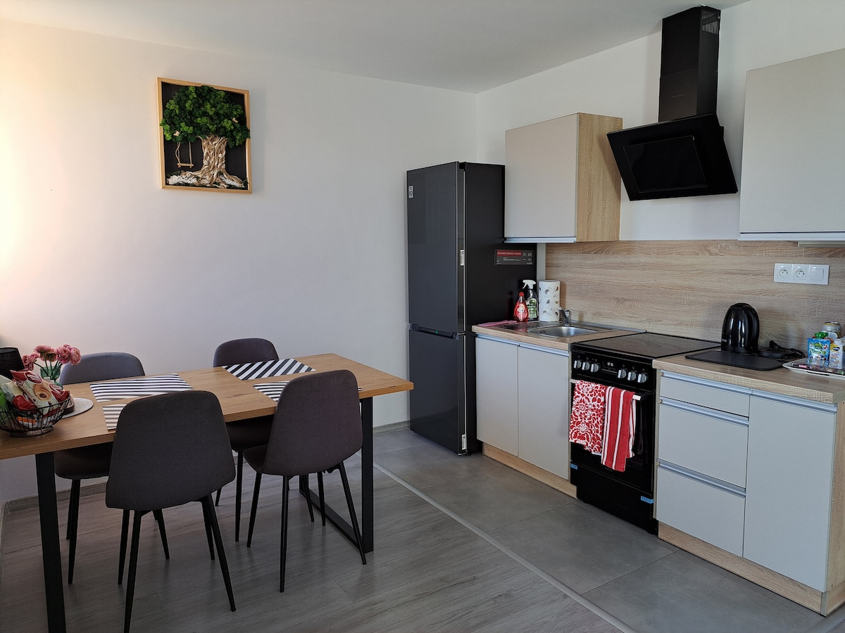 Apartamento de dos habitaciones en un edificio nuevo cerca del centro de Žilina en una zona tranquila con vistas al jardín que le ofrecerá todo lo que necesita. El apartamento dispone de una cocina totalmente equipada, una sala de estar con un sofá que se puede desplegar en una amplia cama doble y un dormitorio con una gran cama de matrimonio. Por supuesto, hay un baño con ducha.