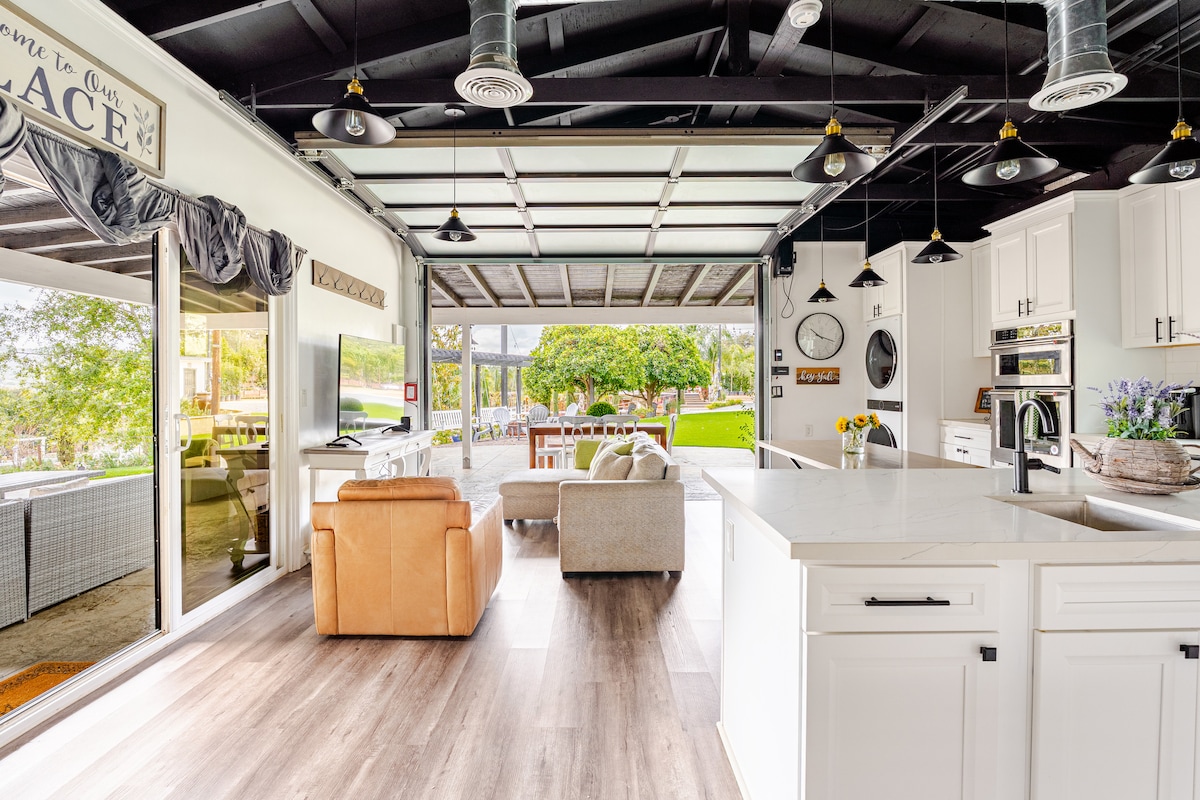 Espacio privado sereno con estacionamiento separado, patio, spa y entrada cerrada. Disfruta de amplias vistas al suroeste y puestas de sol desde tu exclusivo patio. La cocina está completa con nevera grande, cocina de inducción de dos quemadores, horno de convección, microondas, cafetera y lavavajillas. Cama tamaño queen, vestidor y lavandería. Dos pistas para perros totalmente valladas. Perfectamente ubicado como un lugar de descanso tranquilo después de tus excursiones de un día a San Diego, Legoland, playas, montañas, casinos o viñedos, todo a menos de una hora de distancia.