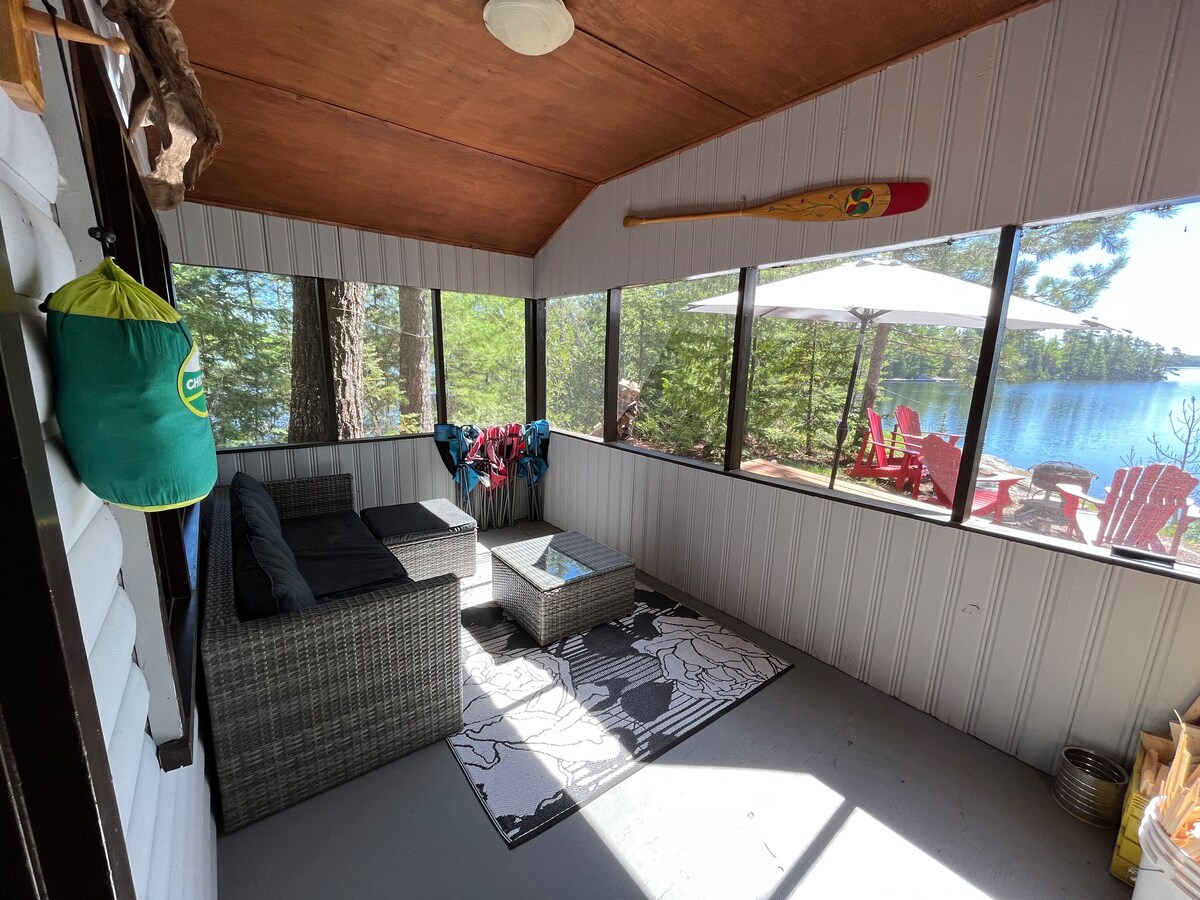 Disfruta de las comodidades diarias mientras contemplas el hermoso lago Rainy. Ubicado a 20 minutos al este de Fort Frances. Carretera y lago accesibles, aire acondicionado central, agua filtrada con ósmosis inversa, lavandería, fogata, área de estar con mosquitero en el lago, 2 kayaks, barbacoa, mesa y sillas al aire libre con sombrilla, muelle compartido y sauna con otros campistas, senderos para caminar cerca. Tienes acceso a todo Rainy Lake en EE. UU. y Canadá. Cerca de la sirena y Sand Point. El propietario puede o no estar en el sitio manteniendo los terrenos.