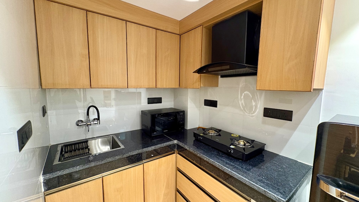 Apartamento de servicio premium 1BHK en el sector 43, Gurgaon con aire acondicionado en el salón y el dormitorio, además de una cocina con inducción, microondas y cubiertos. En una zona elegante, a poca distancia del centro comercial Gold Souk y de la escuela Shalom Hills, a 2,2 km de la estación de metro Millennium City Centre y a 2,1 km del hospital Fortis. Los huéspedes extranjeros son bienvenidos. El registro de entrada anticipado estará sujeto a disponibilidad y tendrá un cargo de 500 rupias, así como el registro de salida después de la hora establecida, que también tendrá un cargo de 500 rupias por cada 3 horas posteriores.