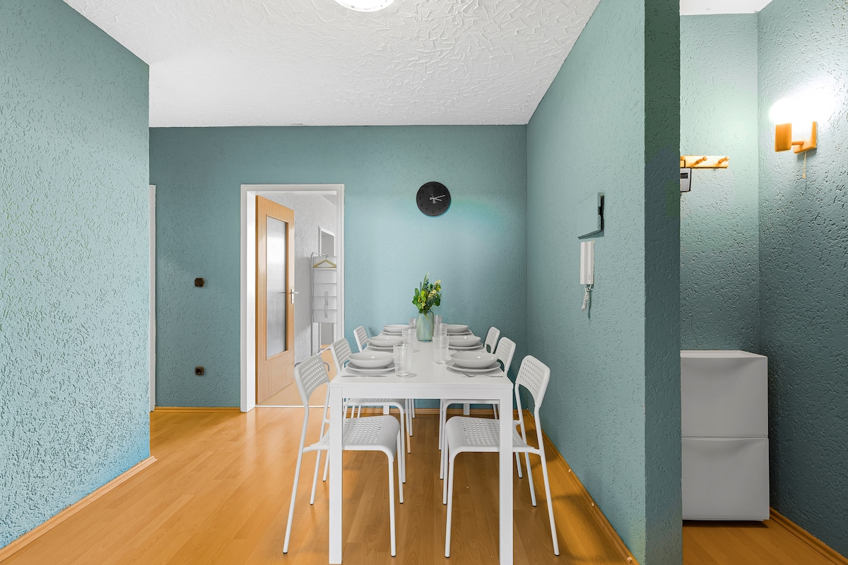 Our apartment environment is perfect! There is a shopping center with everything you need just 7 minutes walk away. Various shops and restaurants await you there. There is a park and a lake nearby where you can relax. The Munich Trade Fair is also just around the corner, perfect for business travelers. And we are ideally located for sightseeing: Olympic Park, BMW Museum, Marienplatz, German Museum and more are easily accessible. Welcome to Munich!