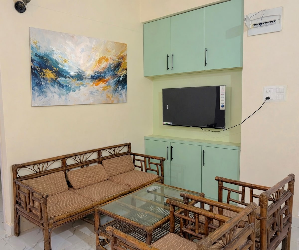 4 adult guests are allowed above that 500₹ per head will be charged. Max 8 guests can be accommodated with extra mattresses. 2 bedrooms and a kitchen+ Living room which is shared by both Bedrooms. Both bedrooms have private attached washrooms. Discover comfort at Avana Bliss Hotel – a budget-friendly stay with clean rooms, essential amenities, and warm service. Conveniently located for easy travel, we offer a cozy retreat that feels like home without stretching your budget.