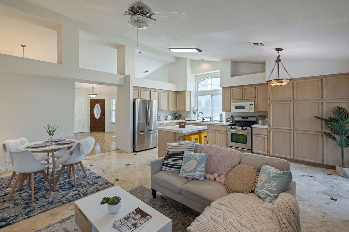 ¡Casa totalmente remodelada para familias de 3 dormitorios/2 baños con suelos de lujo y techos altos abovedados con capacidad para 10 personas! Incluye colchón inflable para 2 personas y sofá cama. Disfruta de esta ubicación privilegiada a pocos minutos de los restaurantes mejor valorados, la vida nocturna y el centro comercial Prime. El alojamiento cuenta con un televisor inteligente de 75 pulgadas y una chimenea con el juego de arcade «Los Simpsons». Cada habitación tiene una cómoda cama tamaño queen, cocina totalmente remodelada y electrodomésticos fáciles de usar, parque infantil para bebés y mucho más. ¡Disfruta de tu estancia!