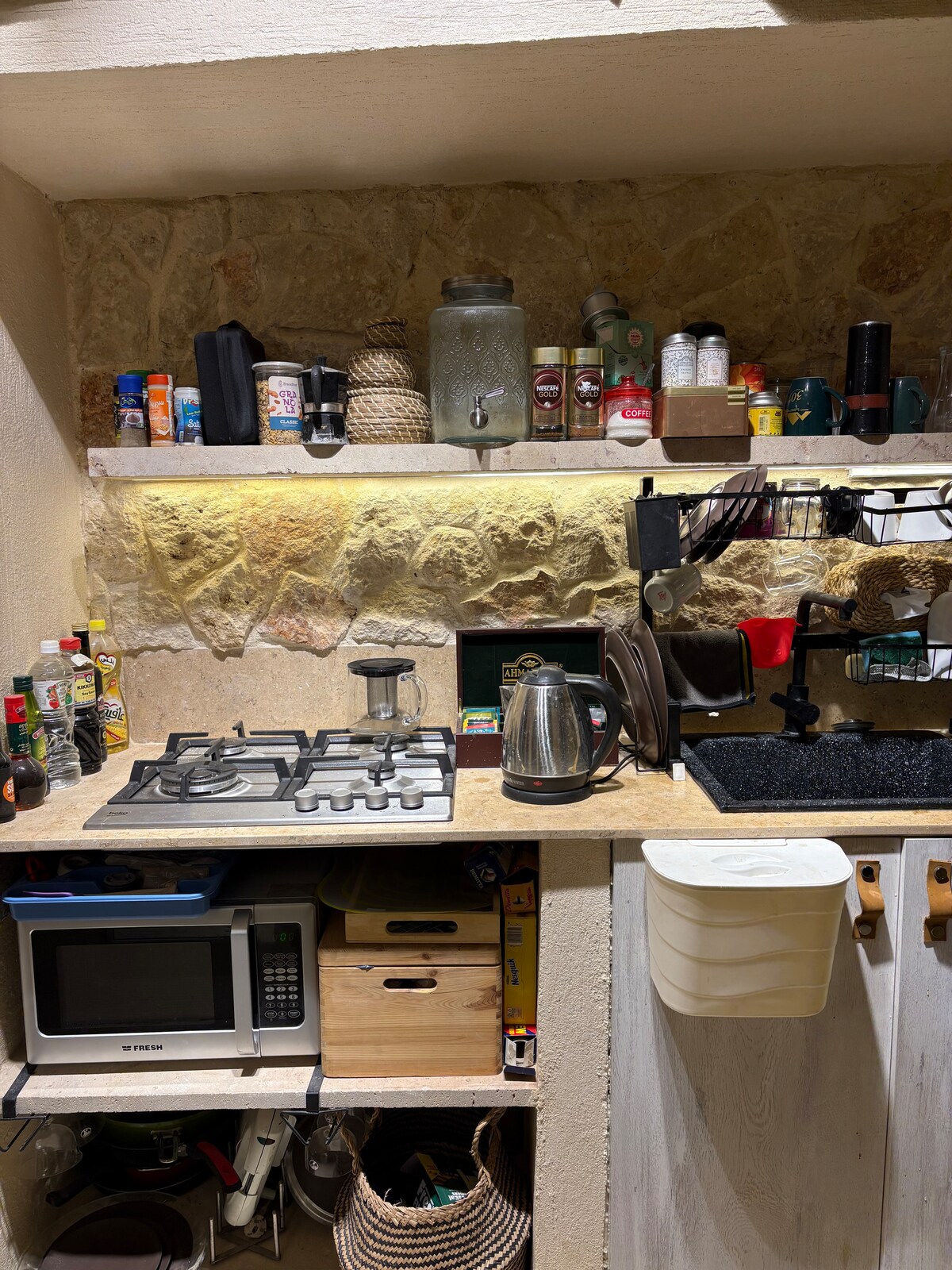 "Cozy studio chalet on the 1st floor in La Hacienda Ras Sudr (G6F – G City). Includes a queen bed, two stacked singles, a pull-out sofa, lazy boy, full kitchen, TV, AC, and bathroom with shower. Spacious balcony with 2 bean bag. Beach and pool access included. Note: G City area still has some construction activities in working days."