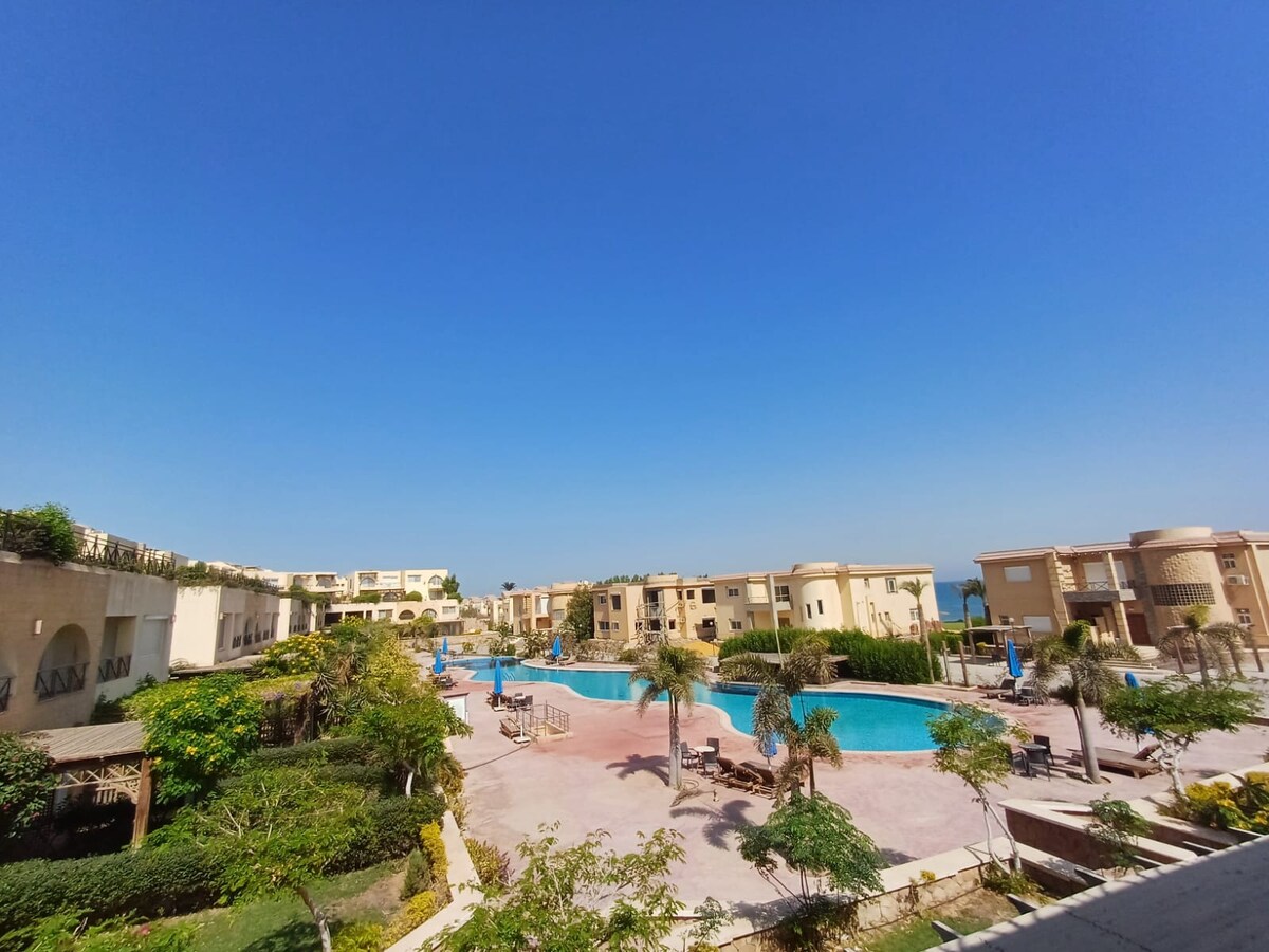 Enjoy a delightful stay at matarma bay with a panoramic sea view 2.5 hours away from cairo for your Ras sudr trip. The unit is equipped with AC, TV to make your stay comfortable. You can always enjoy using our kitchen, free parking Our chalet is located in a great location with beach front view. We look forward to hosting you! No mixed group, unmarried couples Or shisha allowed as per the Matarma Compound rules Niqab is not allowed for entry. -Access to beach with proper swimming suites