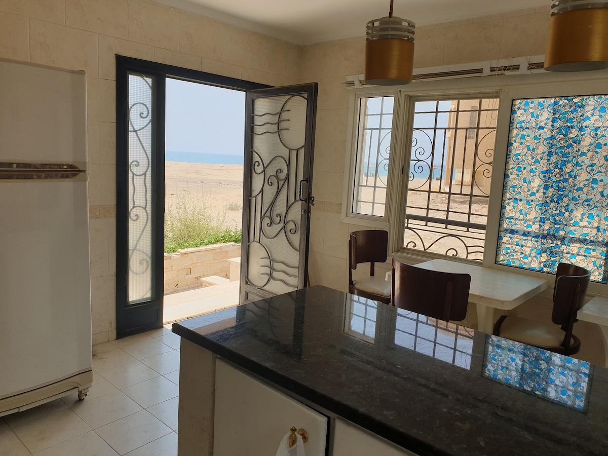 Rocky beach! Families only! sit back and relax at Stella Sea View Ain Sokhna. A standalone home, first row on the beach. Wake up to a beautiful view & a well designed space. The coral & green tones of this home blend perfectly - making this vacation home aesthetically divine. With a big terrace on the beach, you are 2 steps away from the shore and the shared pool. Just relax and take a break from the busy city life. A quiet private location that will certainly put you in a state of pure bliss