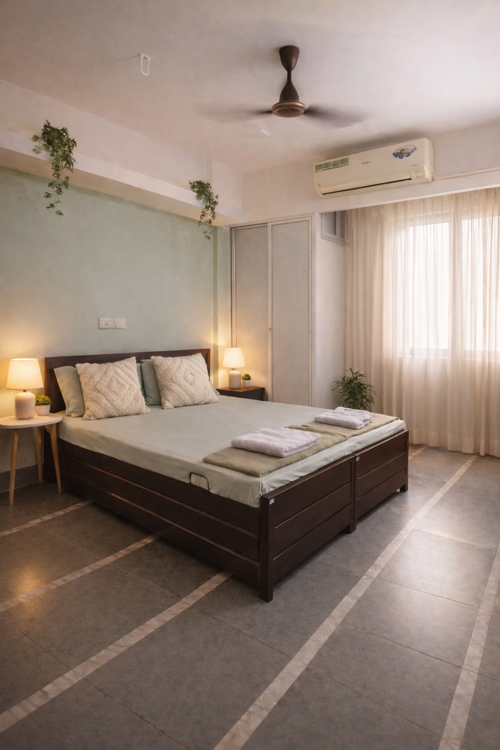 Bienvenido a Sanidya, un tranquilo 2BHK ubicado en el regazo de las montañas Sahyadri, a poca distancia en coche de Panvel. - Lo que te encantará: - Interiores tranquilos y acogedores diseñados para crear un ambiente relajado - Hermosas vistas a las montañas. - Dos dormitorios amplios y soleados con un ambiente tranquilo - Espacios decorados con buen gusto, perfectos para descansar - Cocina equipada para que te sientas como en casa - Rodeado de vegetación, paseos por la naturaleza a solo un paso - Ideal para trabajo remoto, escapadas en solitario, estancias en pareja o tiempo en familia tranquilo
