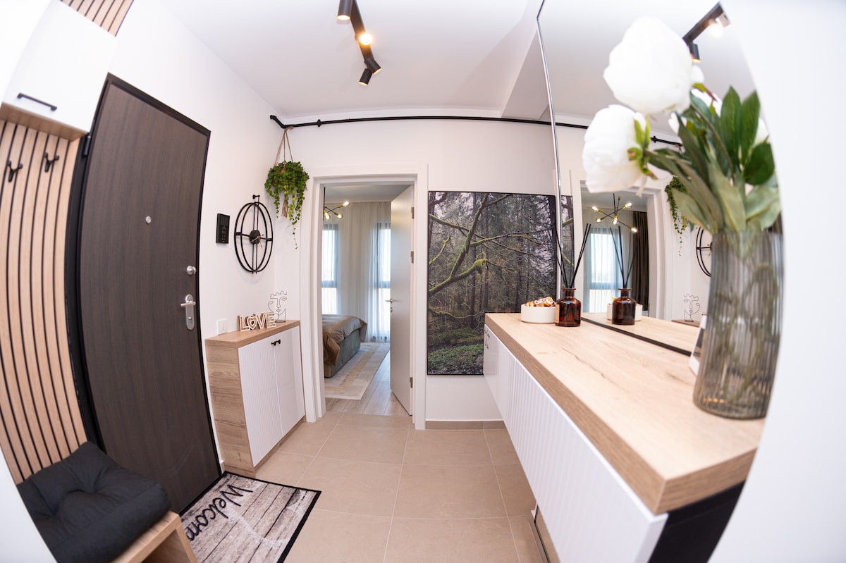 Te estamos esperando con un estudio moderno, totalmente amueblado y equipado, aire acondicionado, TV inteligente, lavadora, estacionamiento, todo para mayor comodidad. Persianas eléctricas en las ventanas , todas están hechas para sentirse lo mejor posible en nuestra ubicación. A 2 minutos tienes varias tiendas y restaurantes , Mega Image , Lidl, Penny. ¡De nada!