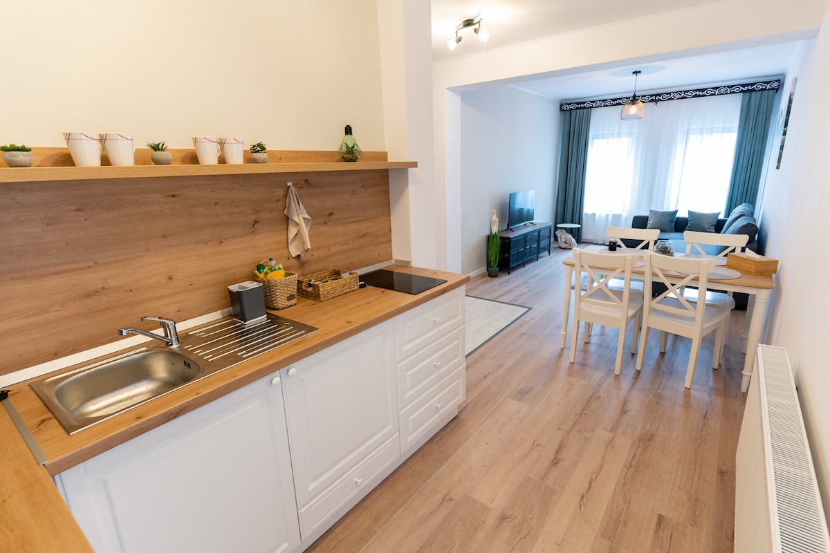 Amplio departamento de 78 m2 con dos dormitorios y una gran sala de estar. Una chimenea, una gran terraza y una cocina totalmente equipada son especiales del apartamento. La televisión por cable y el centro multimedia con Bluetooth te esperan por la noche después de un día relajante. Es posible hacer una barbacoa fuera del edificio. En los alrededores hay un SPA con piscina , jacuzzi y una bonita zona de relajación.