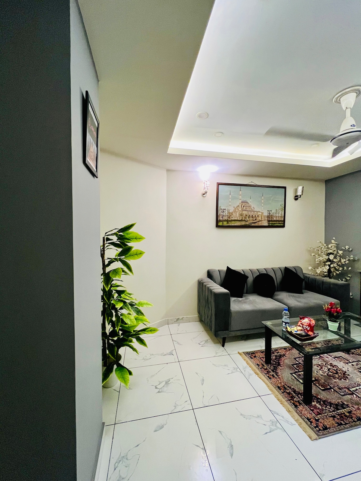 Welcome to this humble, yet cozy and vibrant space. Located in the newer heart of Islamabad, we have set up this cozy apartment, perfect for couples/ small families/business travellers/tourists looking for a peaceful and comfortable visit to Islamabad. The artsy bits will add flavour to your stay which will otherwise be serene. The balcony boasts a nice view. Situated, both close to central Islamabad and to DHA and Bahria town, both ends of the city are in close proximity.