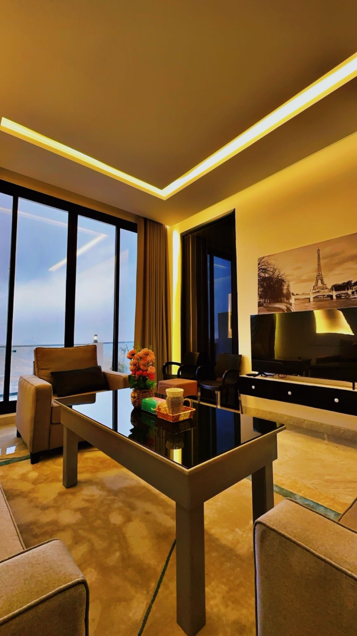 Los chalets de hospitalidad privada Abha Sky con sistema de remolque de ventanas de cristal completo y cortinas ignífugas junto al parque Sama Abha se caracteriza por la privacidad total. El lugar tiene un ambiente muy fresco que incluye un dormitorio principal, un dormitorio principal, un bufé totalmente equipado, dos dormitorios, un dormitorio principal, las otras tres camas y un bufé totalmente equipado, todos equipados con sesiones de observación exterior, cada una con una entrada privada para coches, entradas privadas y un servicio de lavandería bajo demanda.