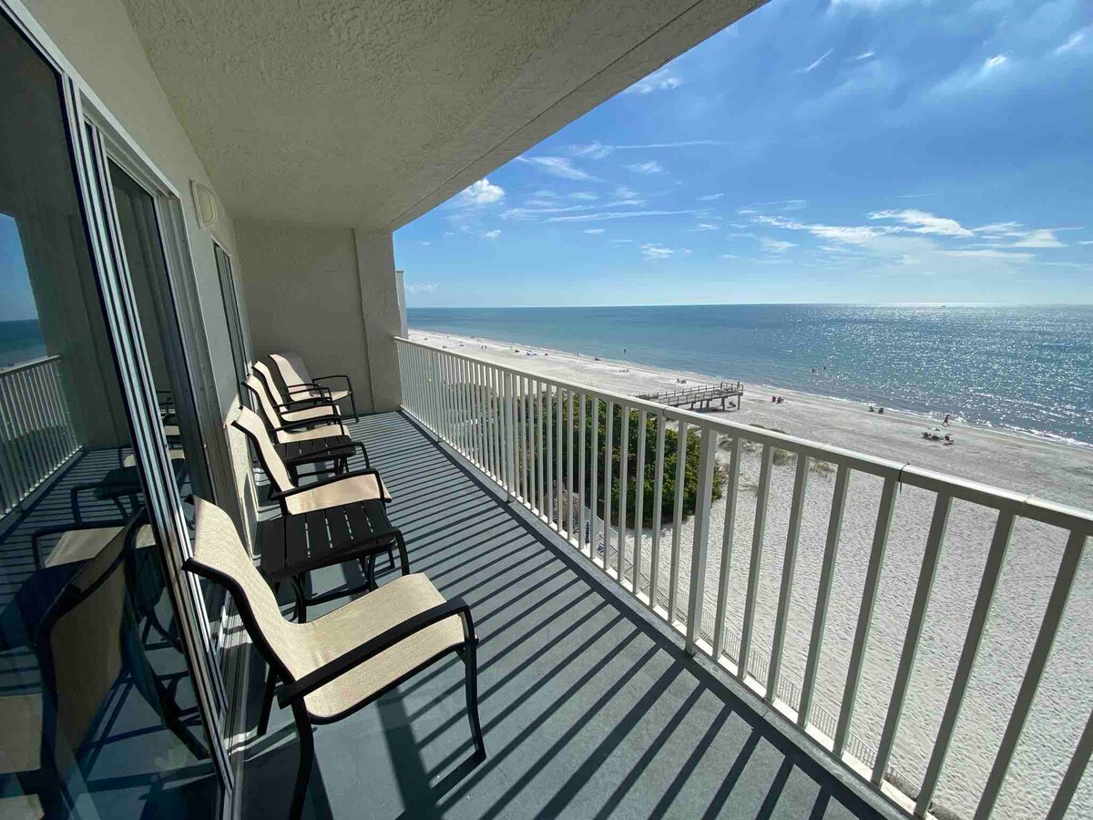 ¡El Marquise 204 es un hermoso alojamiento de 1300 pies cuadrados frente a la playa! ¡Vistas directas al golfo! Unidad de esquina en la planta superior. Edificio pequeño y tranquilo de 10 unidades. Excelente ubicación para escapadas con familiares y amigos. Después de llegar, literalmente puedes dejar tu coche atrás e ir caminando a más de 10 restaurantes, bares y tiendas locales. ¡Disfruta de algunas de las mejores puestas de sol que verás en toda Florida desde tu balcón privado! NO SE ADMITEN MASCOTAS. El inquilino DEBE tener al menos 25 años. NOTA: DOS tramos de escaleras, NO hay ascensor.