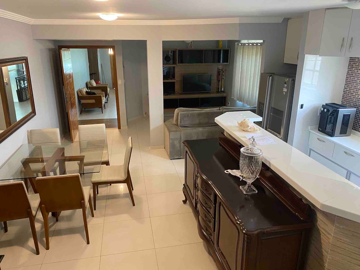 Relaxe com toda a família nesta acomodação tranquila. 3 quartos e duas salas, cozinha, máquina de lavar, sendo 1 suite e dois banheiros sociais. Ideal para passeio familiar, rua tranquila, à 200m da praia do foguete. 10min do centro de Cabo Frio e Arraial do Cabo. Ônibus passa em frente.