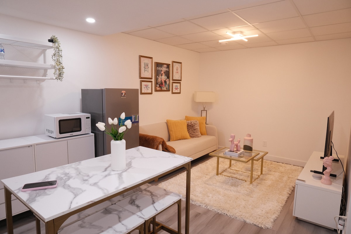 Escondida en uno de los barrios más nuevos de la ciudad, esta nueva suite en el sótano te invita a relajarte. Los neutros suaves y las líneas limpias crean un ambiente relajante, mientras que los detalles seleccionados aportan un lujo discreto. Disfruta de una cama grande, navega con una conexión wifi rápida y explora con facilidad. Tanto si estás aquí para trabajar, pasear o relajarte, este tranquilo refugio hace que cada momento se sienta intencional. Disfruta de un 10% de descuento en estancias de 7 noches o más. Consigue un 20% de descuento cuando reserves para 28 noches o más.