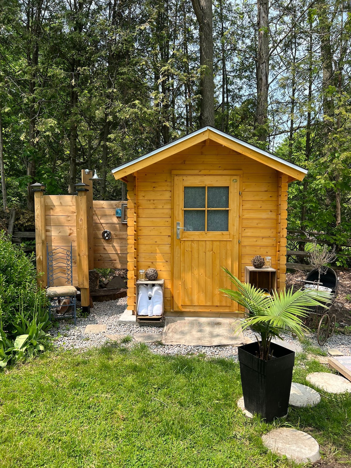 Serenity Glamping es tu estancia ideal. Con una yurta de última generación y una deliciosa cena de la granja a la mesa junto al fuego de leña, es un viaje de vuelta al sur de Europa. Reserva tu cena al menos 24 horas antes de la llegada. Se aplican tarifas de cena. Con un baño de piedra y una ducha de lluvia bajo las estrellas. Estamos a solo 10 minutos en coche de la histórica ciudad de Port Perry y a 20 minutos de Thermea Spa. Cervecería, quesos locales, bodega y kayak.