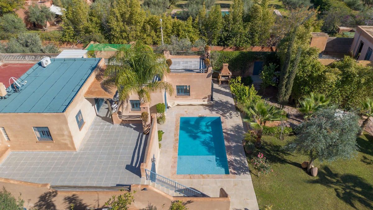 Bienvenido a Villa Dar Mazar, un oasis tranquilo a 20 minutos de Marrakech. Esta elegante villa combina confort moderno y encanto marroquí, con piscina privada, terraza, jardín y cinco dormitorios con baño. Perfecta para familias o grupos, ofrece tranquilidad, privacidad y fácil acceso a Marrakech. Relájate junto a la piscina, disfruta de comidas en la terraza o del salón. Wi-Fi, cocina, parking privado y limpieza opcional.