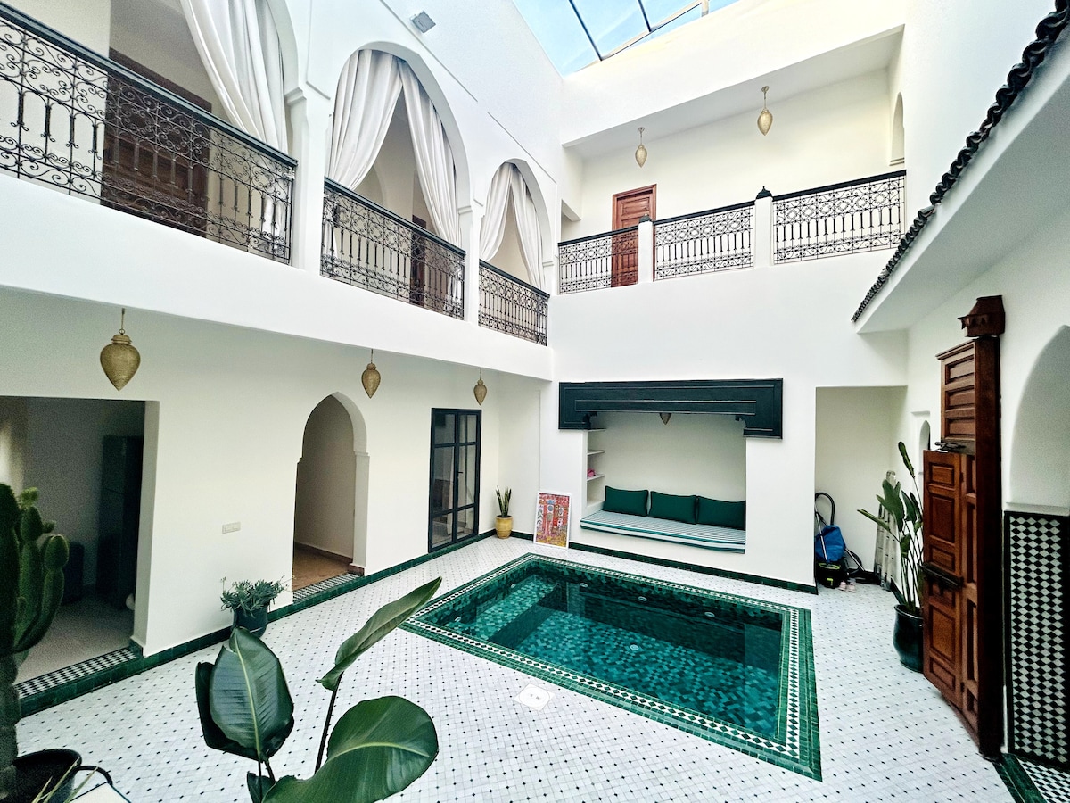 AZ RIAD es más que un lugar donde alojarse, es un arte de vivir y una historia de amor. Una historia de amor entre una familia francesa y Marruecos. Un estilo de vida también porque en este Riad todo es sobrio y elegante. Nuestro Riad de tres dormitorios, tres baños y una piscina en la azotea es un verdadero remanso de paz, ya que combina la tranquilidad y la proximidad a las principales atracciones turísticas (de la plaza Jemaa El Fna, declarada Patrimonio de la Humanidad por la UNESCO).