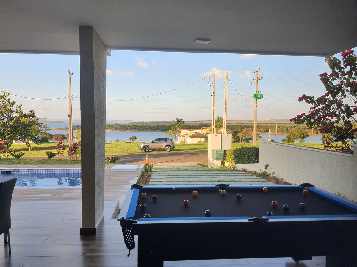 Amplia casa, al borde de la presa, en una comunidad cerrada con solo 28 lotes. Un proyecto llevado a cabo por Ambienta Arquitetura (prestigiosa por la revista Arquitetura e Construção y otros) con 3.900 m2 de terreno, 516 m2 construidos, una piscina estándar y una piscina climatizada más pequeña (calentador eléctrico), trampolín, slackline, kayak, surf de remo y barbacoa. 5 suites (todas con aire acondicionado) y otro aseo. Capacidad para alojar cómodamente a 14 personas más un bebé.