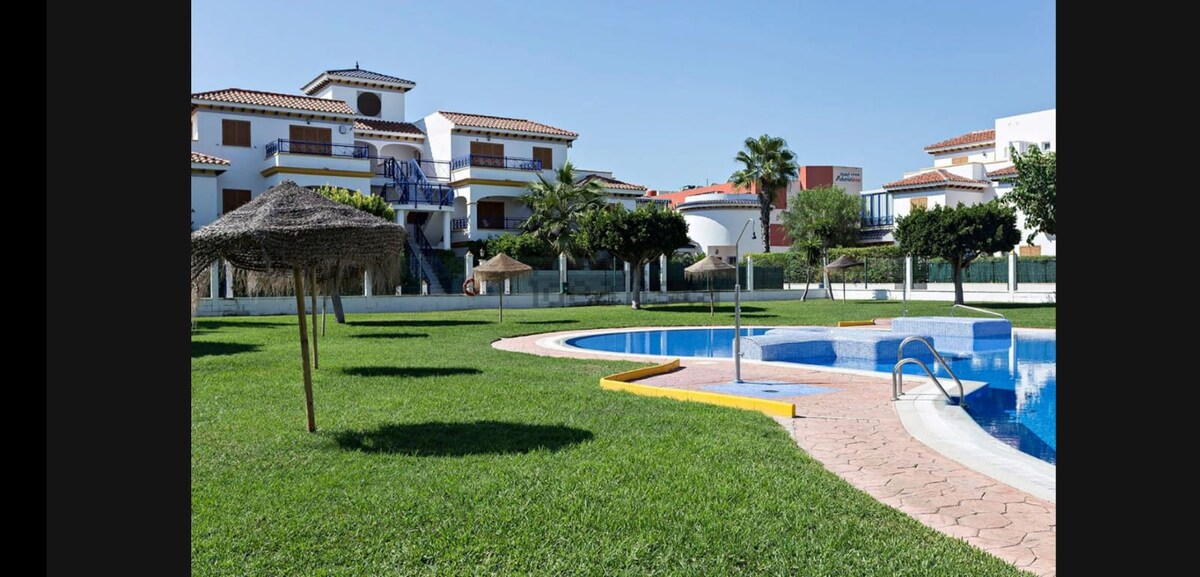 Vivienda en primera línea de playa en el Parque Natural de Cabo de Gata, en la localidad de Retamar - Almería. Con vistas al mar en una urbanización con zonas comunes con jardín, pistas de tenis, footbal, basketball y una grande piscina. (abierta finales de junio hasta principios de septiembre). Una zona muy familiar con todos los servicios. Retamar es la primera localidad dónde empieza el Parque natural de Cabo de Gata, estando a menos de 10 minutos del aeropuerto, 15 minutos de Almería centro.
