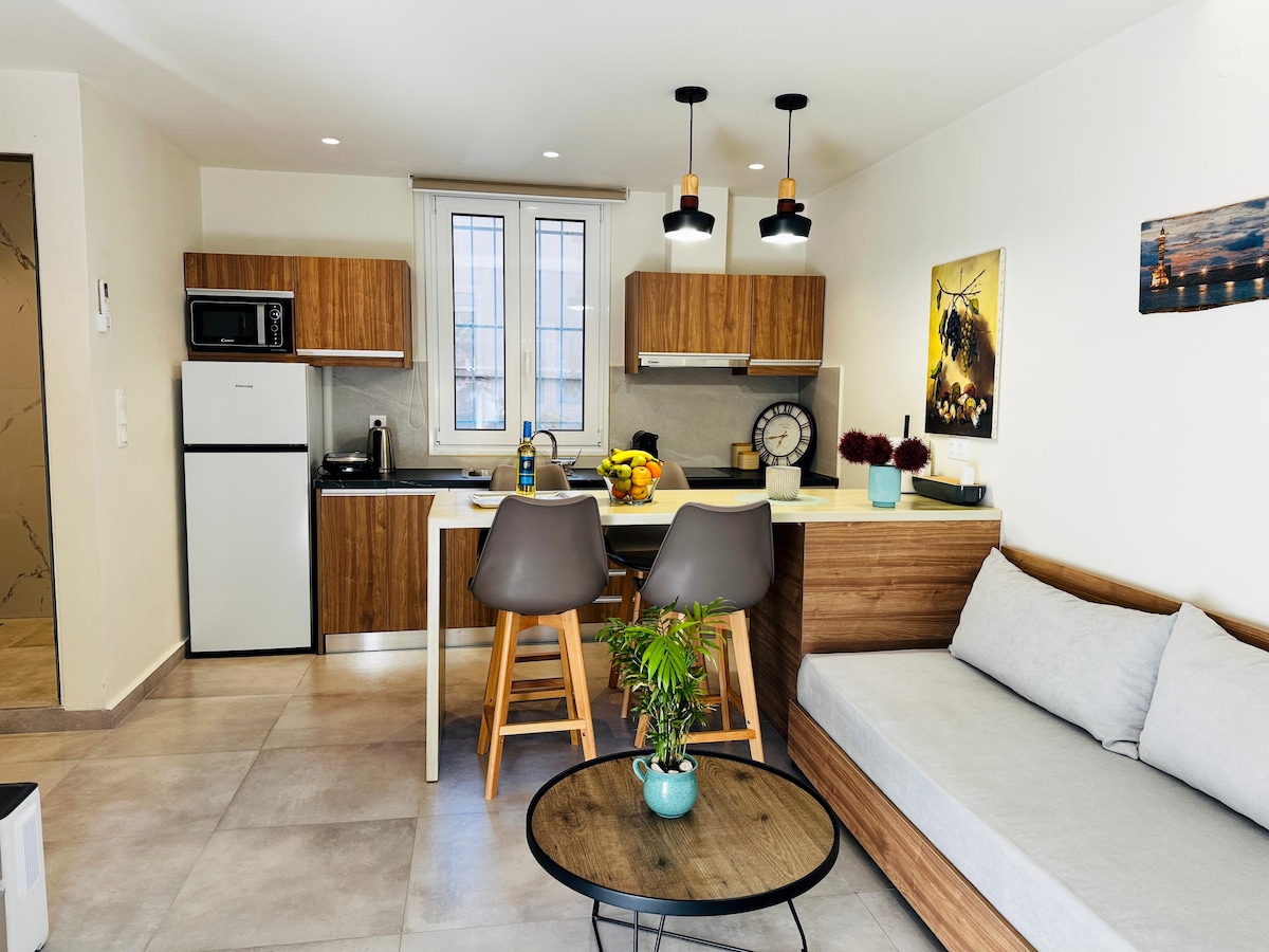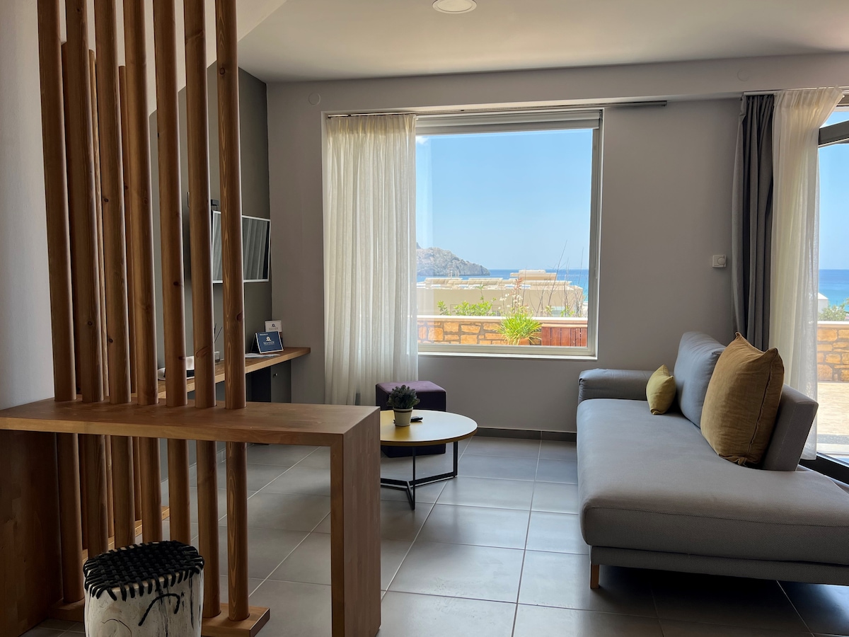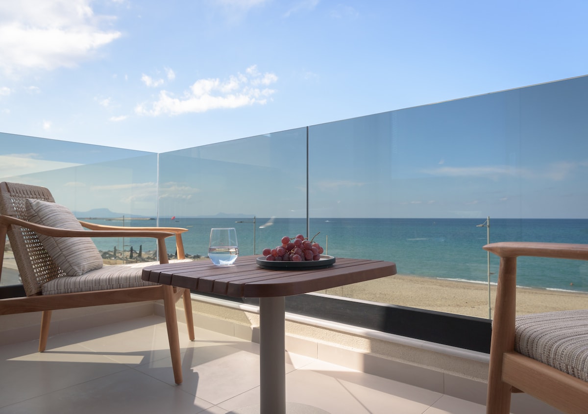 Our brand-new seafront suite offers an oasis of luxury and tranquility with a breathtaking Mediterranean Sea view. Enjoy the ultimate seaside getaway with a plush UK king-size bed, a fully equipped kitchen, and a balcony to watch the sunrise or sunset. With the beach just steps away and plenty of local restaurants/beach bars nearby, our suite is the perfect choice for a relaxing and indulgent vacation. Come and experience the ultimate in luxury seaside living!