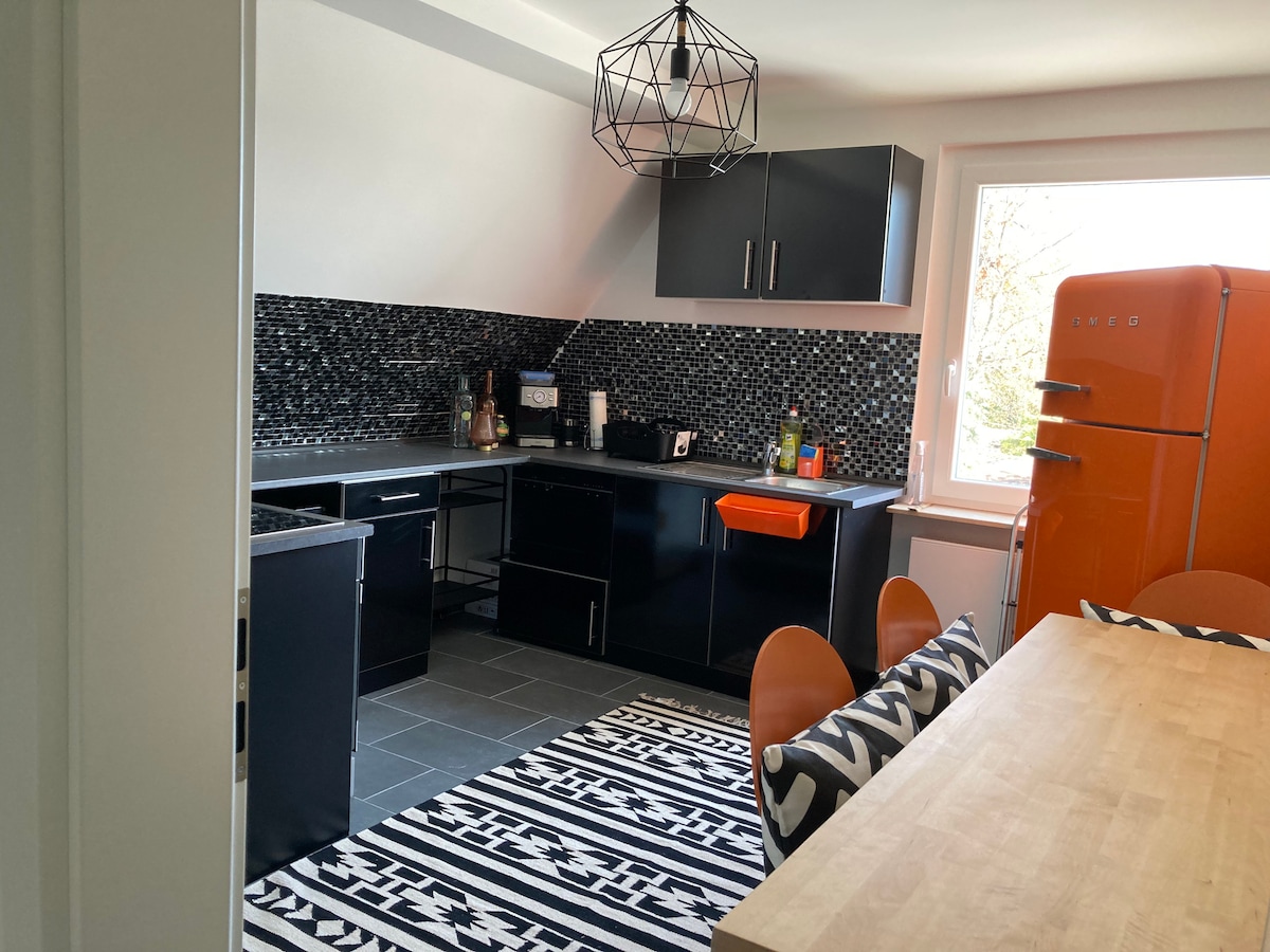 Si te quedas en esta casa céntrica, tu familia tiene todos los puntos de contacto importantes cerca. Las conexiones con el autobús y el tren están a poca distancia a pie. A 50 metros hay supermercados como Lidl y Aldi, 2 gasolineras y un McDonald's. El apartamento está situado en una calle muy transitada, con un mayor ruido de coches y camiones en las horas punta, pero el apartamento está equipado con ventanas de triple acristalamiento, pero a pesar de poco