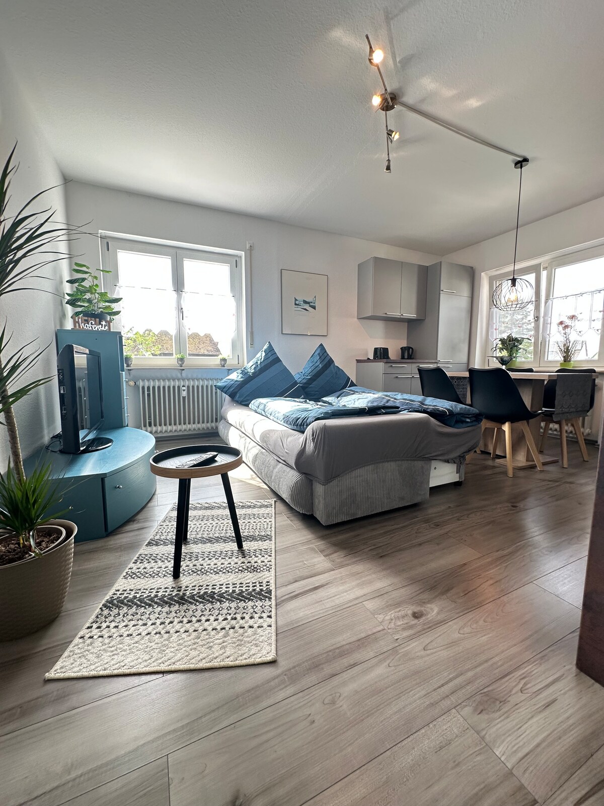 El espacioso apartamento recién reformado está situado en el centro y a 5 minutos a pie de la estación de tren. La ciudad de Offenburg ofrece una bonita zona peatonal y un entorno digno de ver. Se pueden hacer excursiones a la Selva Negra, a Friburgo, al Europapark o a Alsacia. El aparcamiento está disponible cerca del alojamiento en aparcamientos públicos (de lunes a sábado de 9:00 a 19:00 de pago). Las bicicletas y motocicletas pueden aparcarse de forma segura.