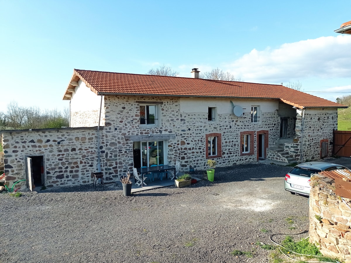 Gîte dans ancien corps de ferme de 300 m², en pierres restauré, à 650 m d'altitude, au calme. Capacité d'accueil de 15 personnes. Activités : piscine, randonnées, balades, visites (château de la Roche, proche beaujolais vert, la loire, ...), baignades en lac (lac des sapins 30 mn, lac de Villerest 30 mn..), accrobranche à Violay 10 mn,les gorges de la Loire 30min, karting à Bully 30 mn...