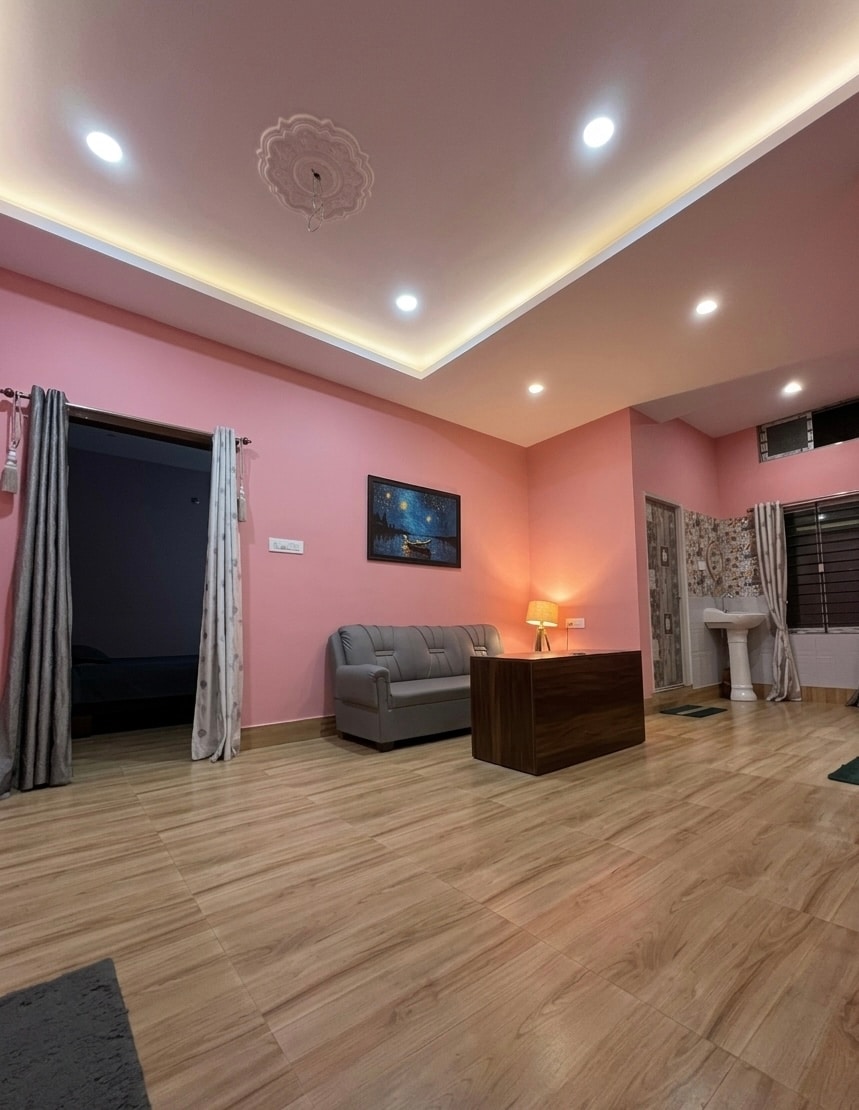CasaVue is a premium 2BHK river-view stay overlooking the Brahmaputra and the iconic Umananda Temple. The home features two spacious bedrooms with attached bathrooms, AC, geysers, hotel quality linens, and a smart TV with high-speed Wi-Fi. A large balcony, cozy boho interiors, and a peaceful environment make it ideal for families and couples seeking a luxurious yet homely stay,perfect for both short and long stays.