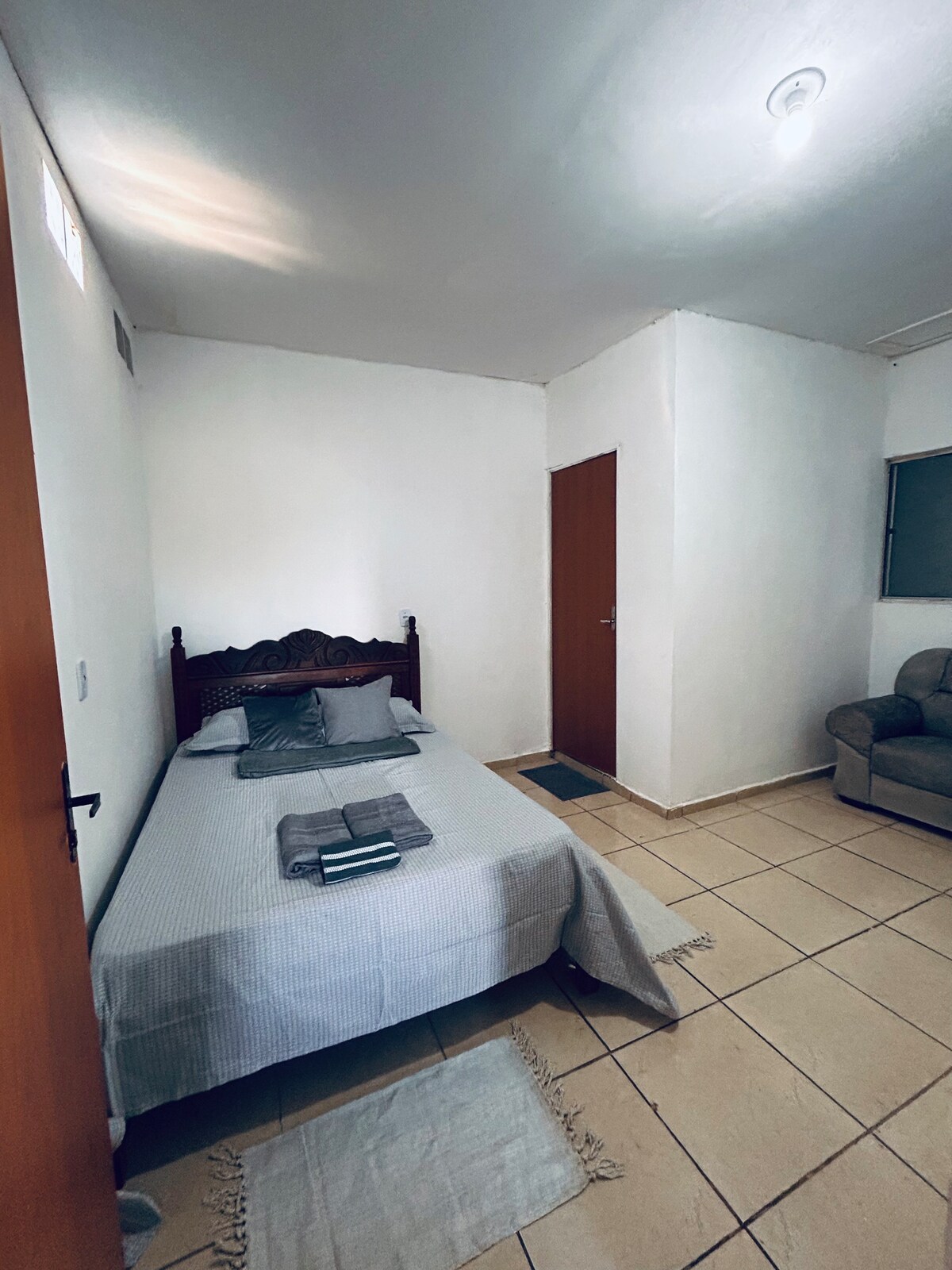 Apartamento amueblado de 2 dormitorios, 1 con aire acondicionado. Cocina completa, sala de TV, comedor y wifi. Zona gourmet con barbacoa y bañera de hidromasaje climatizada privada para 7 personas con una hermosa vista. Ventiladores de techo en las habitaciones (excepto la habitación con aire y baños). Baño con toallas. 1 espacio de estacionamiento. A 250 metros de Shopping Contagem. Un lugar tranquilo y seguro. Ideal para familias o ocio. Cuarto piso, edificio sin ascensor.