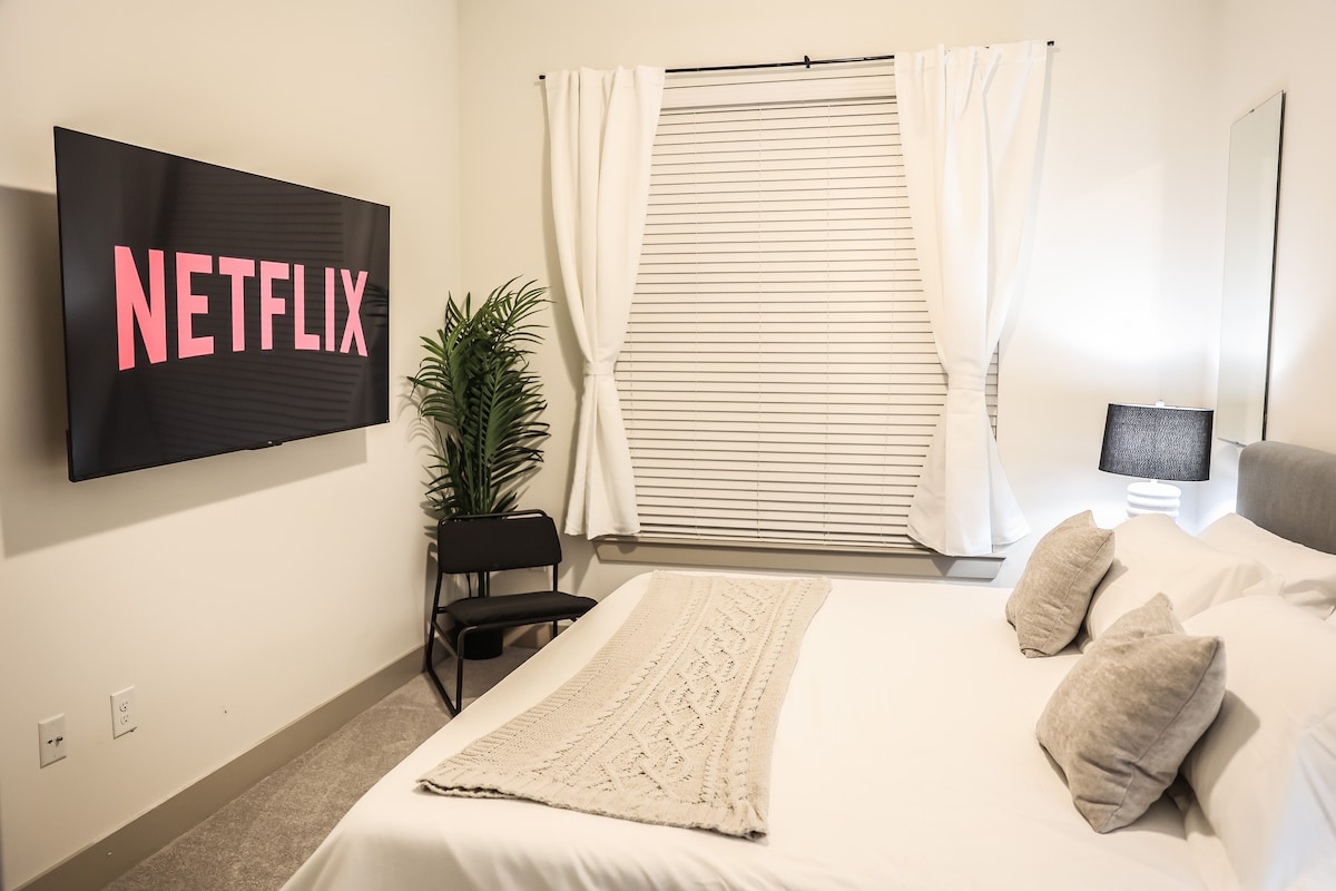 Entras y lo primero que notas es el techo, que se eleva y deja entrar la luz. Deja las maletas. Dirígete a la estación de café completamente surtida y prepara tu taza perfecta. Entra en tu patio privado de gran tamaño o da un paseo de 3 minutos hasta la estación de Dart para ir a cualquier lugar sin necesidad de tu automóvil. Relájate con el televisor inteligente de 75”. Trabaja en el escritorio especial con un monitor de 27”. Piscina del resort, gimnasio 24/7, sky lounge, sala de juegos: todo gratis. Capacidad para 5 personas. Todo lo que necesitas, nada que no necesites.