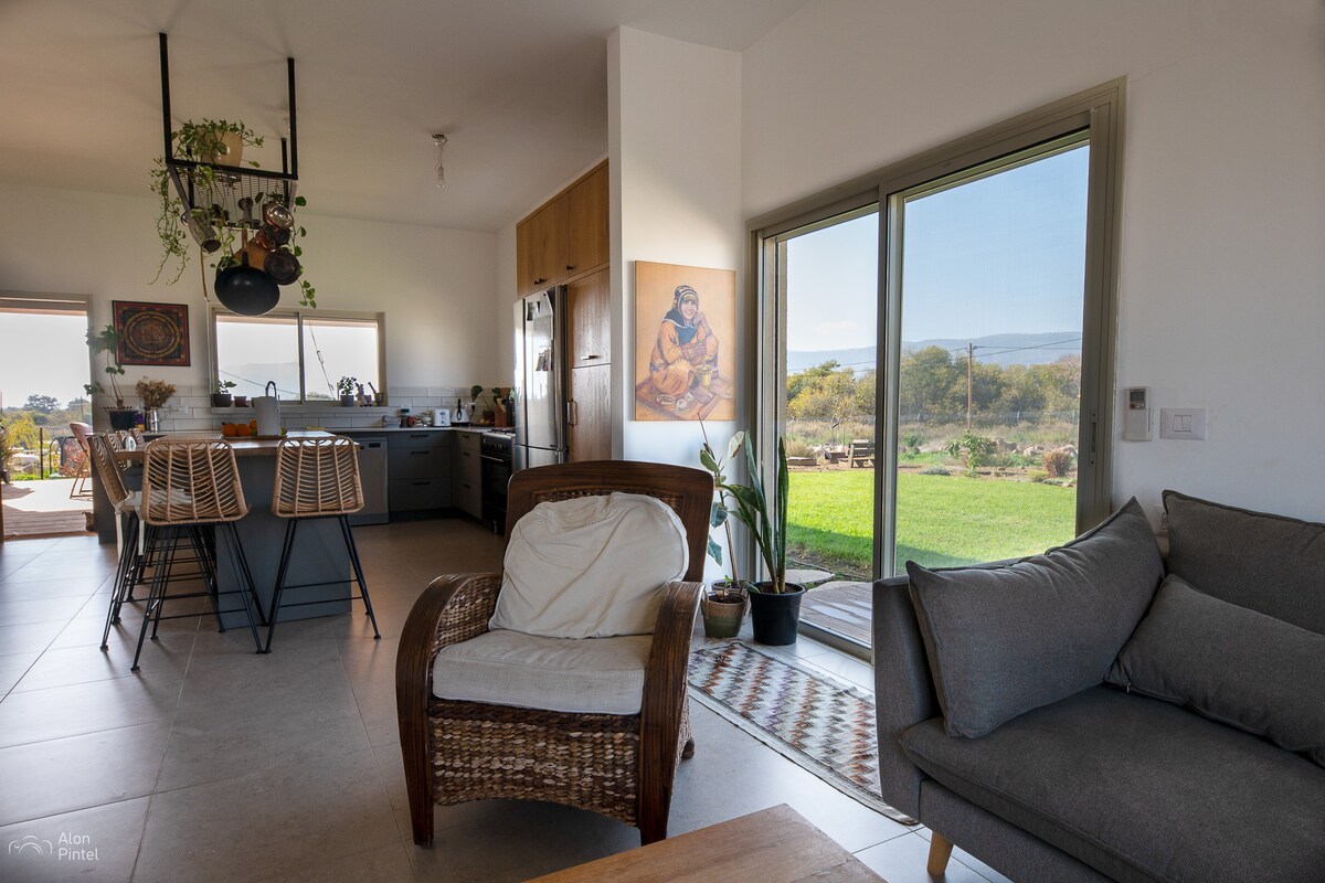 Un lugar espacioso adecuado para familias, con mucho espacio para pasar tiempo juntos. La casa tiene 2 dormitorios con una cama doble (dormitorio principal 190/160 * colchón de cama baja * * habitación de invitados 190/140) y otro dormitorio para niños con una cama individual y 2 colchones individuales. Existe la posibilidad de agregar un colchón individual en el dormitorio principal y una cuna para acampar. La casa tiene un gran espacio central con una cocina cómoda y totalmente equipada y muchas zonas de estar alrededor y fuera de la casa. Hay una gran terraza con vistas a las montañas con una zona de barbacoa, un gran césped y un trampolín. La casa está a poca distancia del arroyo dentro del kibutz y en temporada hay una opción para ingresar a la piscina kibutz por una tarifa en la entrada.