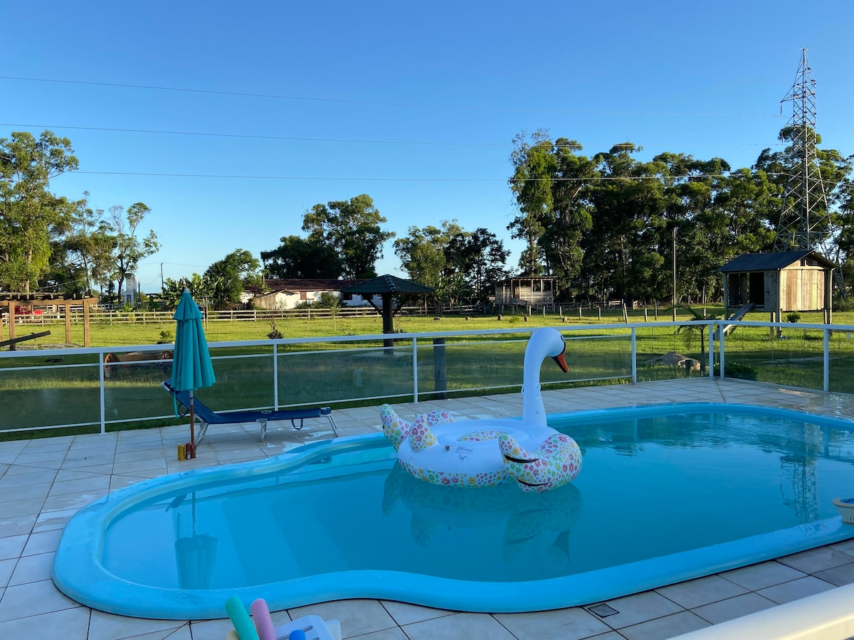 Relájate con toda la familia en esta casa tranquila. ¡Disfruta del jacuzzi! ¡Pesque noazude (ofrecemos caña de pescar)! ¡Cocina en nuestra estufa de leña! ¡Patio con acceso a la laguna! ¡La moto acuática o el desencanto de la lancha rápida es fácil! ¡Las estrellas cerca de nuestro fuego en el piso! ¡Ofrecemos stand up! Estamos a 28 km de la playa Torres RS, a 157 km de Gramado RS y a 165 km de Porto Alegre RS. Sigue nuestro instagran @sitio_jk_