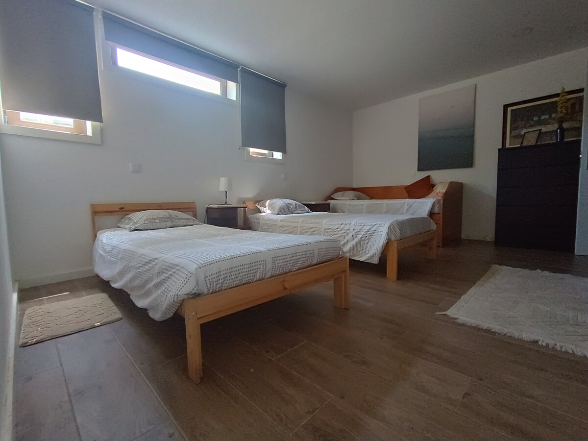 ¡Impresionante casa de arriba, ideal para 3 parejas y 2 niños! Situada a solo 35 minutos del aeropuerto, 15 minutos de las playas , 10 minutos de Braga y Barcelos a pocos minutos 3 habitaciones grandes: 1 cama king-size (180 x 200 cm) 2 camas dobles (140 x 200 cm) Un sofá cama para camas adicionales. Amplio salón: gran televisión para sus momentos de relajación. Cocina totalmente equipada. ¡Disfruta de la proximidad al mar y la tranquilidad del entorno!