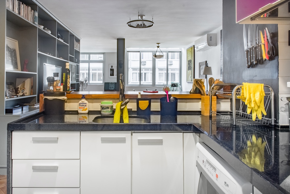 Recientemente renovado. Encantador y espacioso apartamento de 1 dormitorio a poca distancia a pie de las playas de Ipanema, Arpoador y Copacabana. Muy bien situado, en una zona rodeada de buenos restaurantes, supermercados y transporte público. Internet de banda ancha (600M) y una mesa enorme en un espacio exclusivo y espacioso para trabajar.