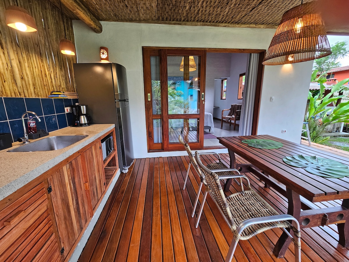 EN FRENTE A ILHA DAS COUVES Casa rústica loft frente al mar y vista privilegiada de la bahía de Picinguaba. Tiene capacidad para 2 personas, con la posibilidad de alojar a un tercer huésped Zona de trabajo con INTERNET DE FIBRA ÓPTICA de 40 Mb Amplio salón, dormitorio, cocina, baño en un único ambiente amplio y fresco. Terrazas con vistas al océano y al bosque atlántico. Ventanas enormes. Vistas increíbles Situado a 30 metros de la playa, sal de la puerta de la casa, cruza la calle y llegarás a la playa.