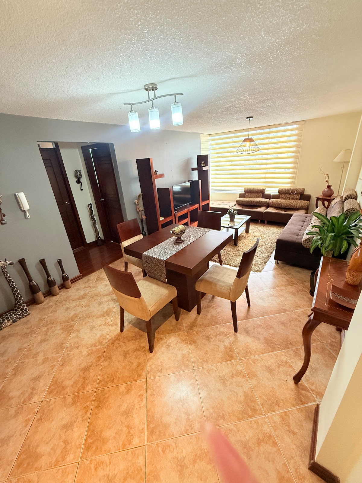 Departamento cómodo y seguro, su ubicación está en una de las mejores zonas de Riobamba, en el sector Paseo Shopping ,UNACH es un gusto para mí poderte recibir personalmente, mis huéspedes han estado muy contentos con el servicio que brindo. El DEPARTAMENTO SE ENCUENTRA EN EL TERCER PISO ( no contamos con ascensor) además puedes disfrutar de una hermosa vista desde las habitaciones, dispones de un amplio espacio para compartir con tu familia, cuenta con garaje y lavandería.